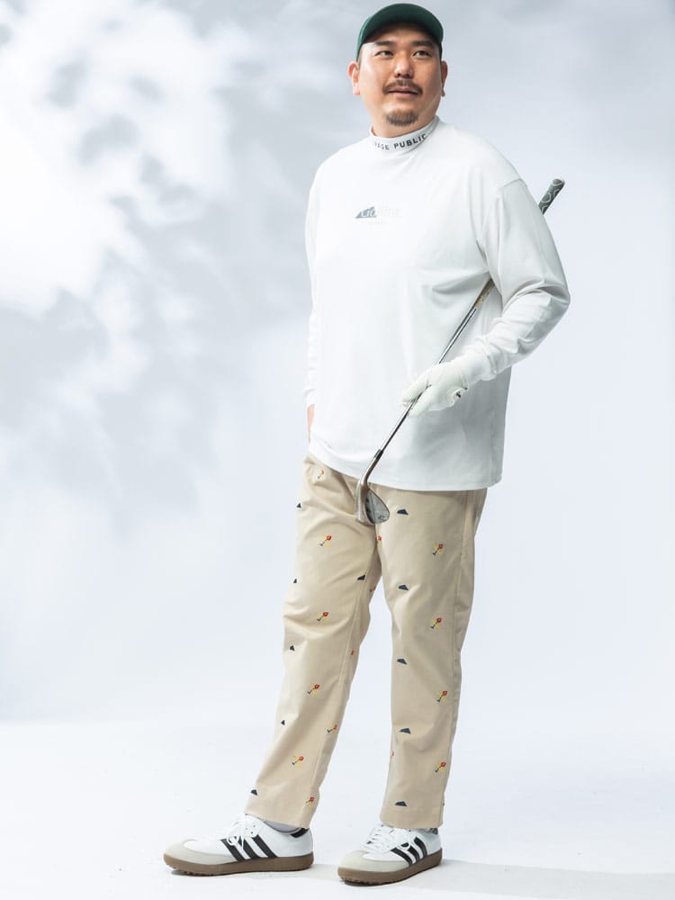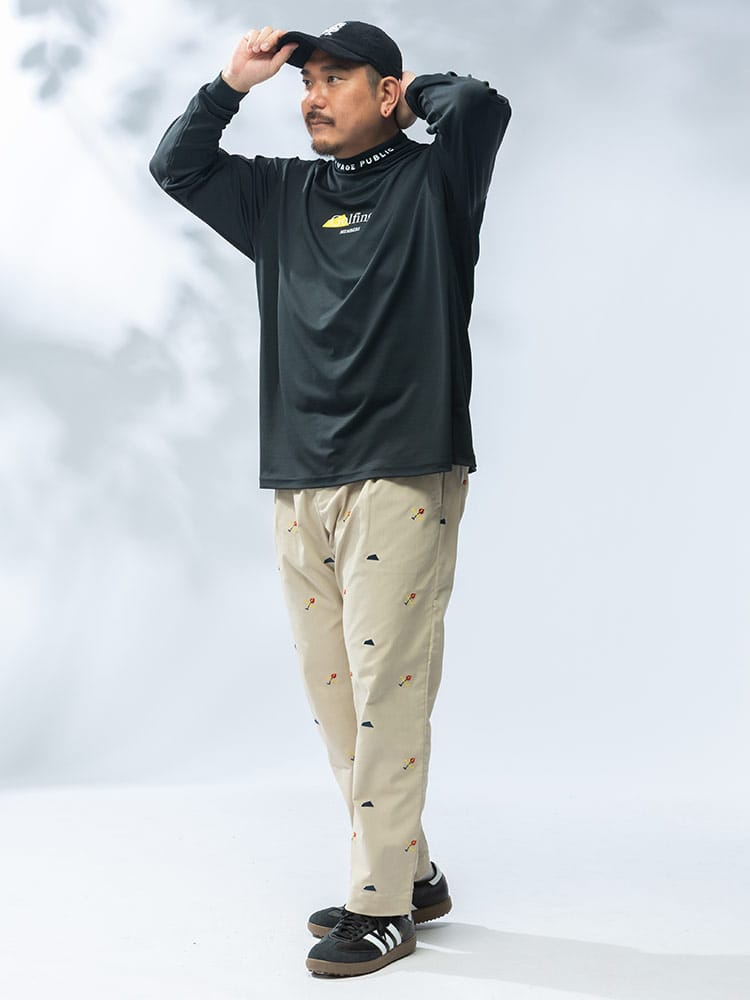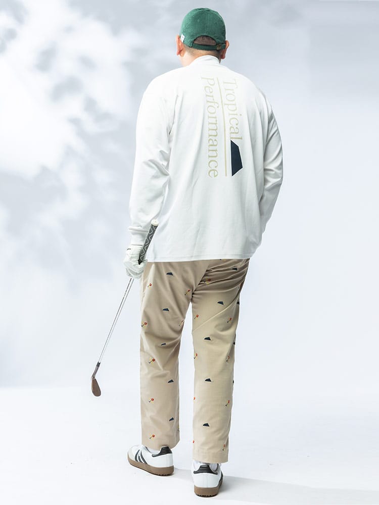 ハワイ・ホノルルから生まれたブランドSALVAGE PUBLIC Kolepa。リラックスしたハワイアンスタイルに、ゴルフに最適な機能性を融合させた新しいウェアを提案しています。このモックネックTシャツは、なめらかな肌触りのスムース素材を採用。ポリエステルとポリウレタンの混紡により、高いストレッチ性を実現し、スイング時の身体の動きを妨げません。また、吸水速乾機能も備えているため、汗をかいても快適な着心地が続きます。バックに大きくプリントされたロゴは、ブランドのルーツであるハワイのサーフカルチャーを感じさせるデザイン。ゴルフ場はもちろん、普段のカジュアルスタイルにも取り入れやすい、ファッション性と機能性を兼ね備えた一枚です。