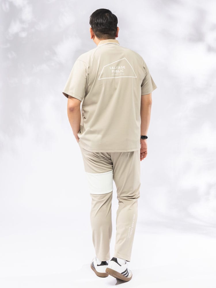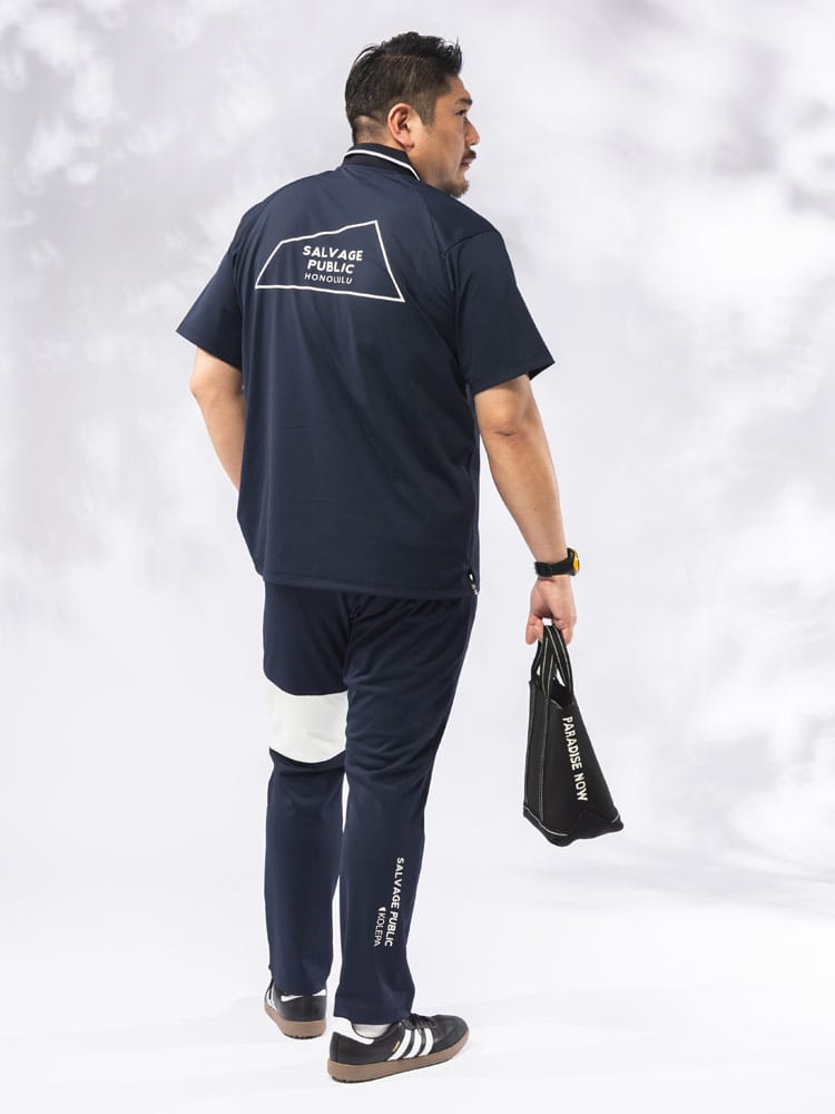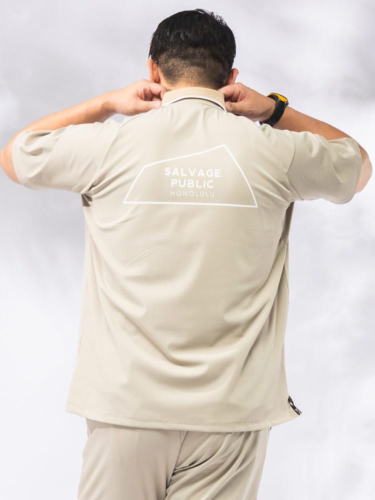 ハワイの風を感じるSALVAGE PUBLIC Kolepaから、機能美を極めたトリコットメッシュ半袖ポロシャツが新登場。高密度メッシュ構造により実現した卓越した通気性と吸汗速乾性で、真夏のゴルフやアクティブシーンでも一日中ドライで快適な着心地をキープします。最大の見どころは、バックスタイルに大胆に配されたブランドロゴ。スポーティーな中に遊び心を効かせたデザインが、大人の夏スタイルを格上げします。優れたストレッチ性を備えた生地は、スイング時のダイナミックな動きもスムーズにサポート。ゆとりある大きいサイズ展開と、清潔感を演出する襟元のリブ使いにより、ゴルフ場からタウンユースまで幅広く着回せる、機能性とデザインを両立した今季マストバイな一着です。