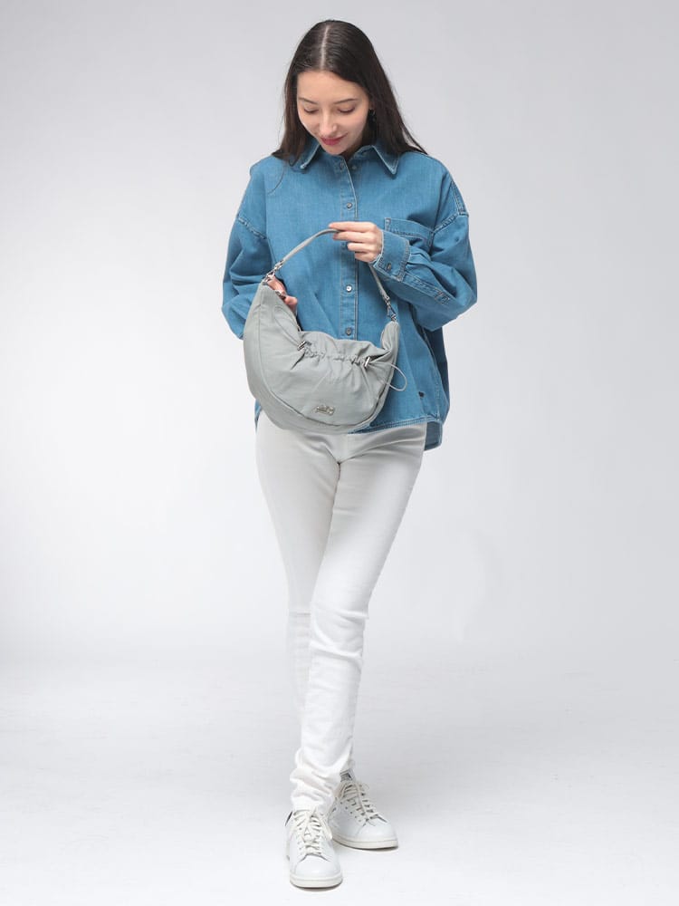 韓国発ブランド『YIE YIE(イエイエ)』は、クリエイティブ ディレクターのSunyuul YieによってYUUL YIEの姉妹ブランドとして2015年にスタート。モードな日常に、さりげない個性を。YIEYIEのSOPHIAバッグは、洗練されたグレーカラーが魅力。綿とナイロンの混紡素材が、柔らかな肌触りと耐久性を実現。取り外し可能なストラップで、ハンドバッグとしてもショルダーバッグとしても使える2WAY仕様。コンパクトながら収納力も抜群で、デイリーユースにぴったり。モノトーンコーデのアクセントに、ぜひ取り入れて。