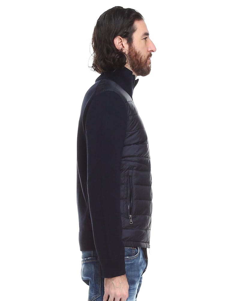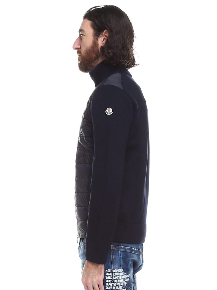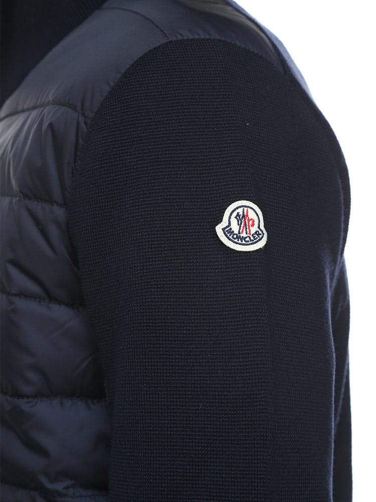 クラシックなMonclerデザインのカーディガンは、暖かい時期には単独で、寒さが厳しくなればジャケットやコートの下に重ねて装えます。ウール素材を使用したカーディガンは、前面にダウンパディングをし、保温効果と外気からの保護性能を高めています。