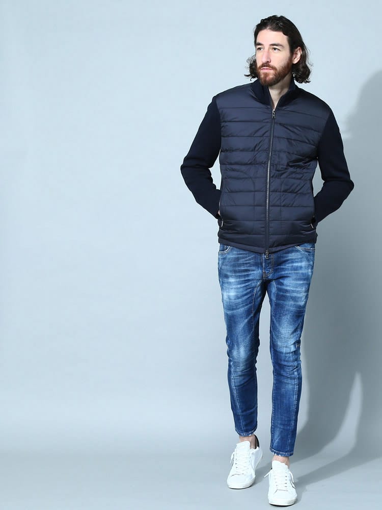 素材 :[前身頃表側]ナイロン100% [本体]アクリル50% 羊毛50% [前身頃裏側]ナイロン100% [詰物]ダウン90% フェザー10%