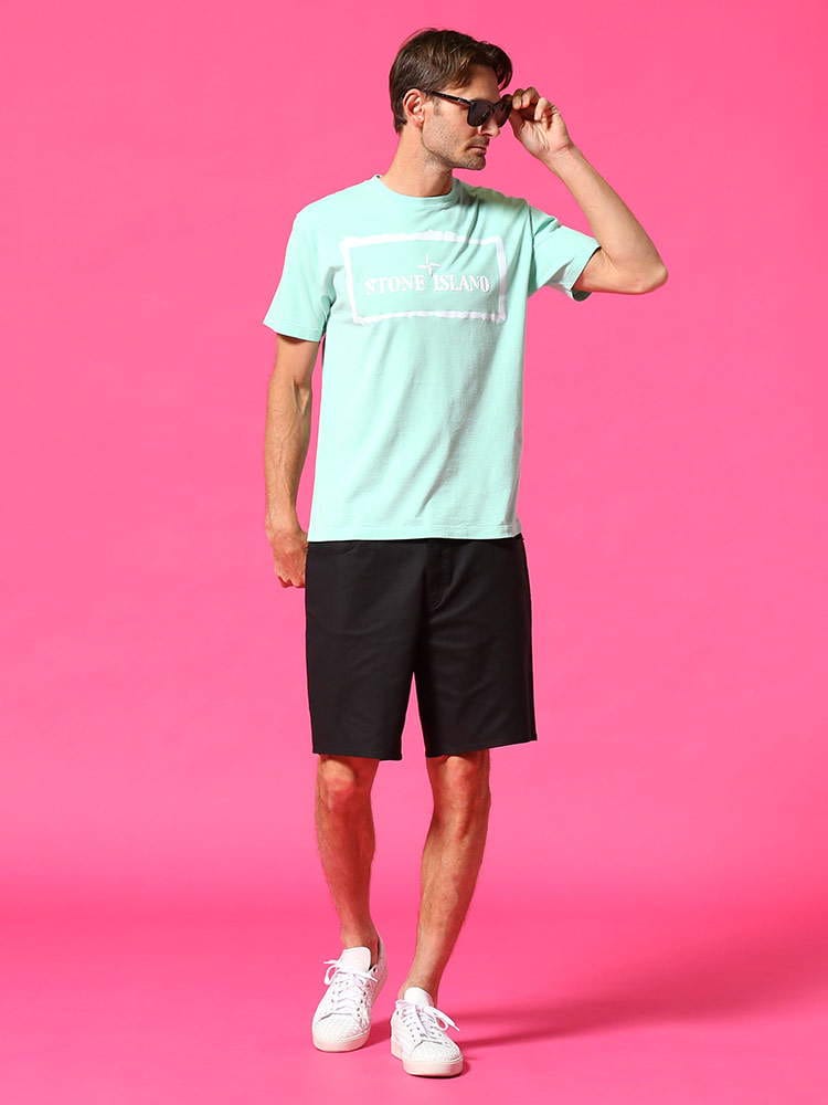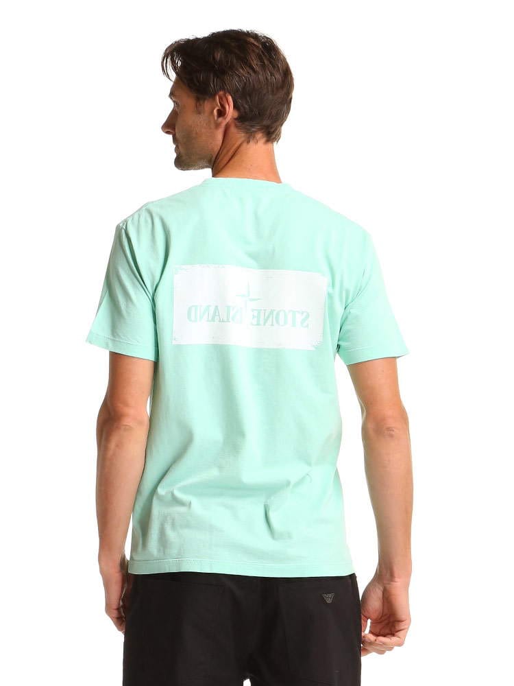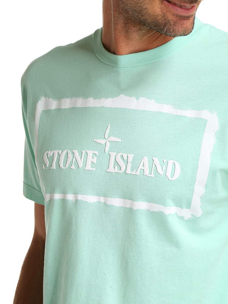 ストーンアイランド メンズ STONE ISLAND STONE ISLAND スクエア ロゴ バックプリント クルーネック 半袖 Tシャツ アクア ブランド トップス Tシャツ 半袖 SI74152NS80