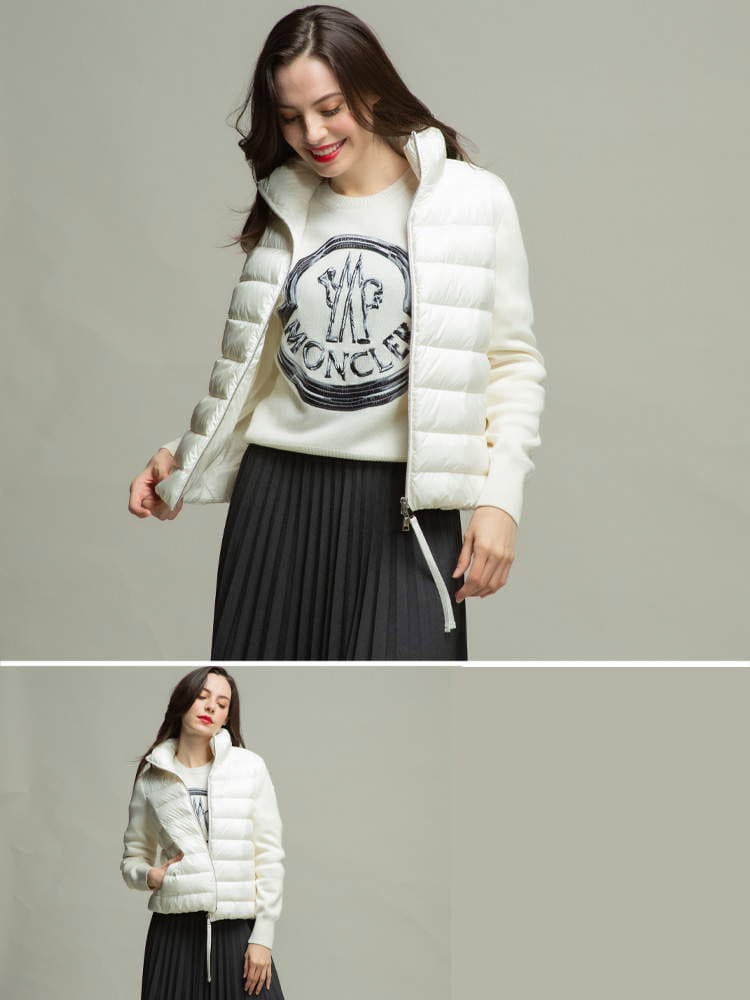 MONCLER定番のダウンとニットのコンビアウターです。腕部分は毛玉になりにくいハイゲージニットなので、腕の太さ関係なく着用できて身動きがしやすいのが嬉しいポイント!首元までしっかりと高級ダウンが詰まっていますので一枚で暖かく、小顔効果も★シンプルなショート丈なのでスカートに合わせても、パンツスタイルでもキマります。ちょっとそこまでお買い物や、デートでも是非着てもらいたい一着です! |