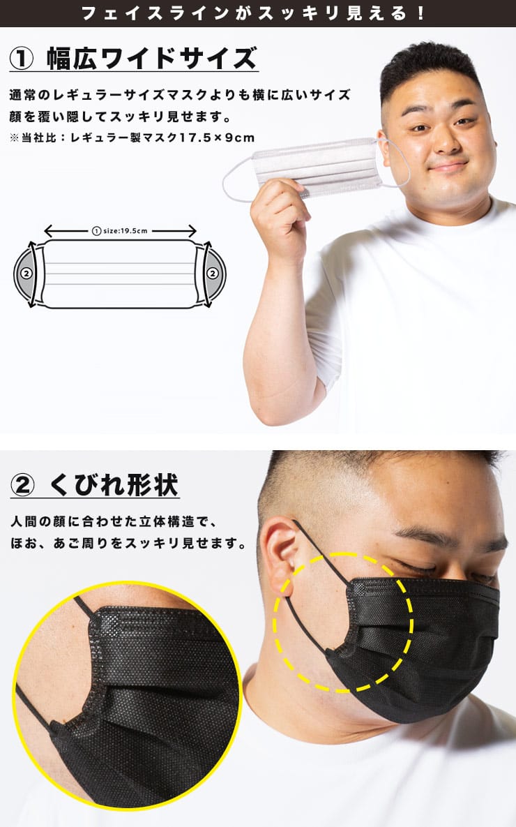仕様 :PFEフィルターで0.1?以上の微粒子を99%カット / ウイルス飛沫・花粉・PM2.5・ハウスダストをカット / フェイスラインスッキリ設計