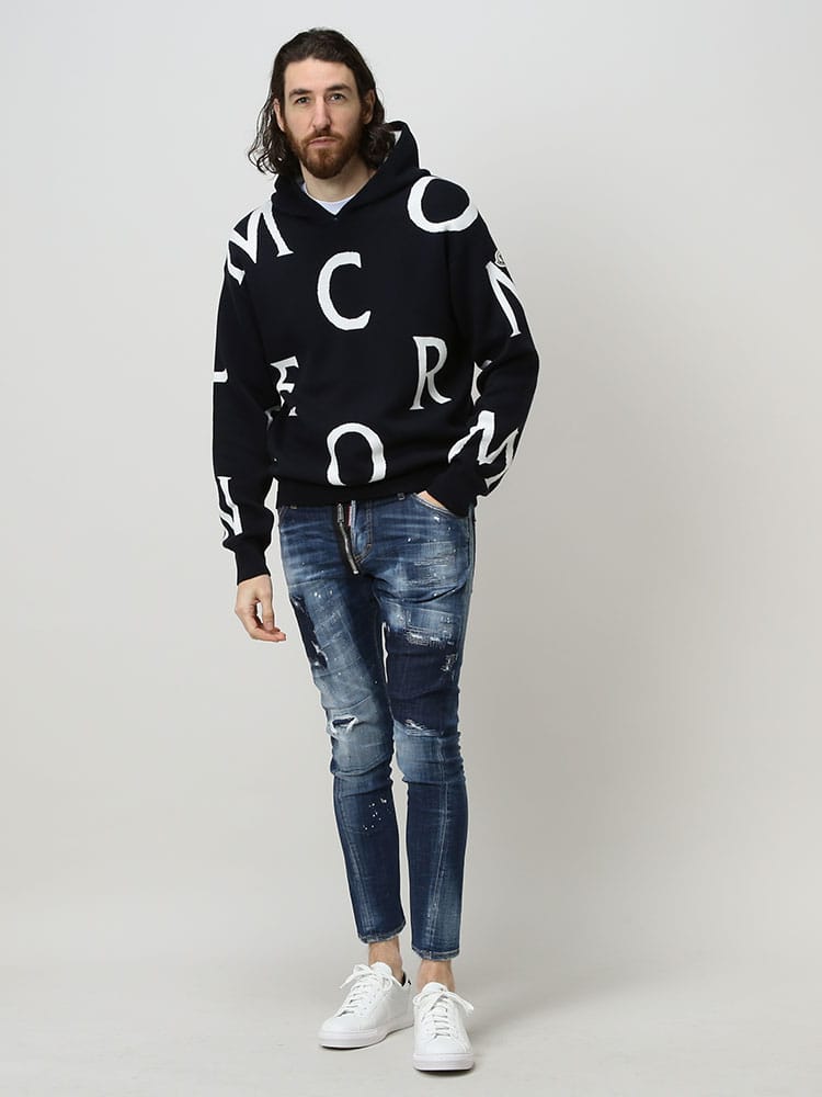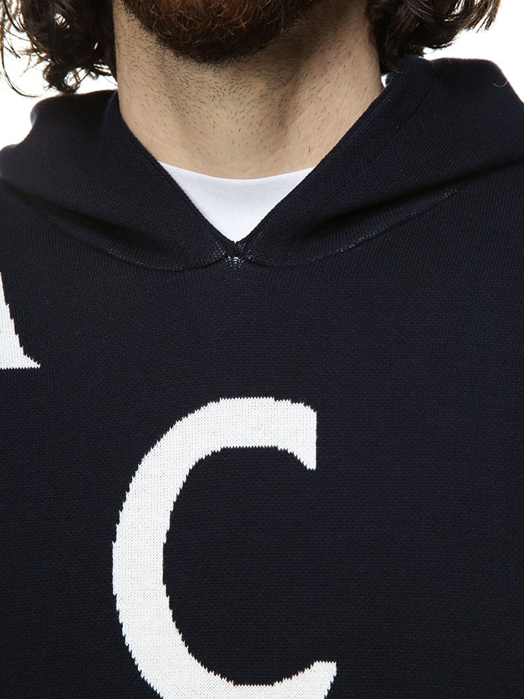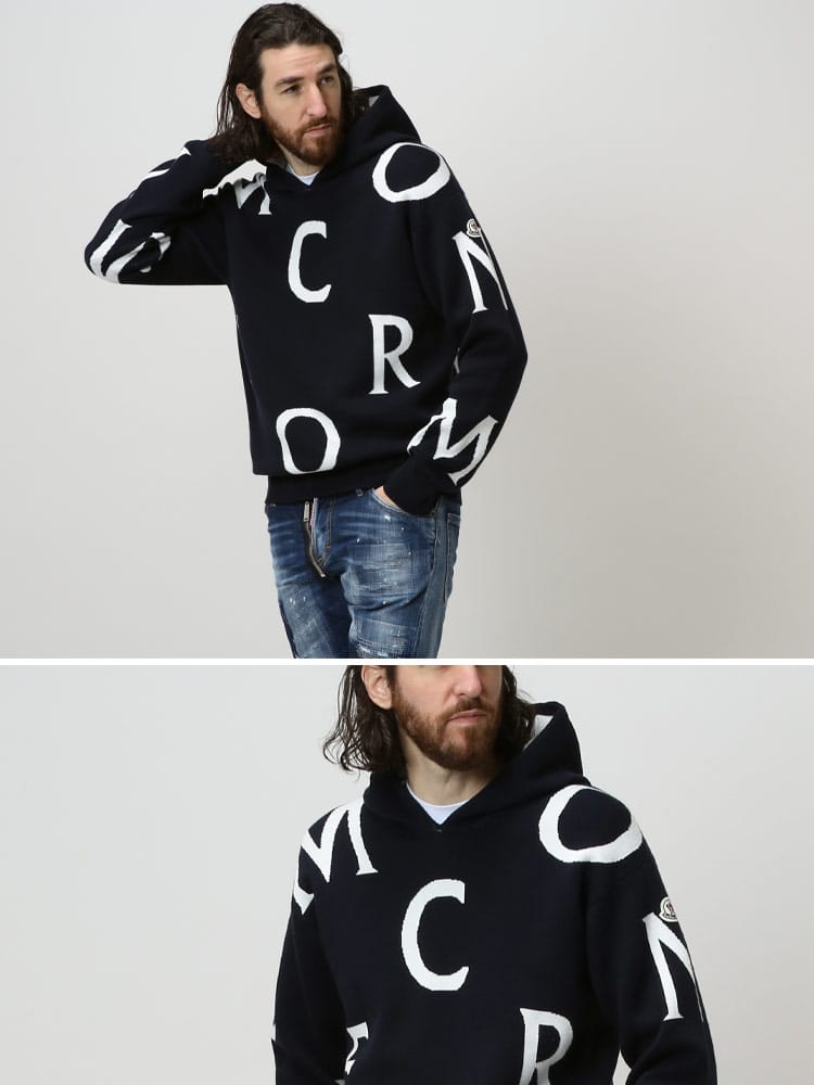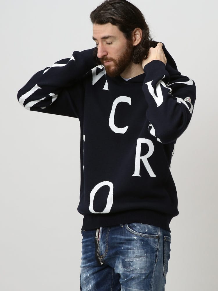 ホームオフィスや屋外で過ごすウィークエンドに似合う、カジュアルなワードローブの定番フーディーです。コットン素材を使用したニットデザインは、グラフィックやロゴパターンが目を引きます。