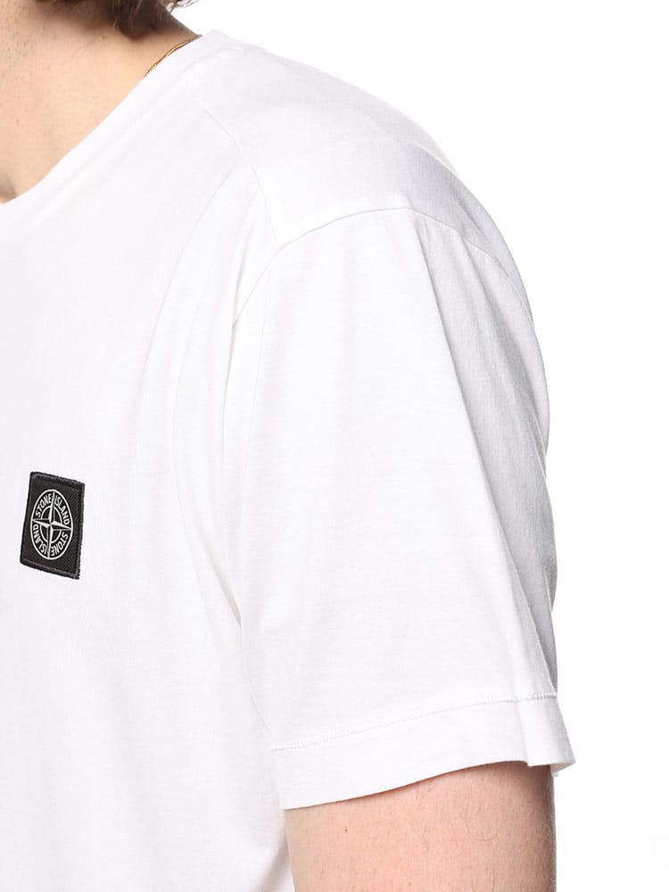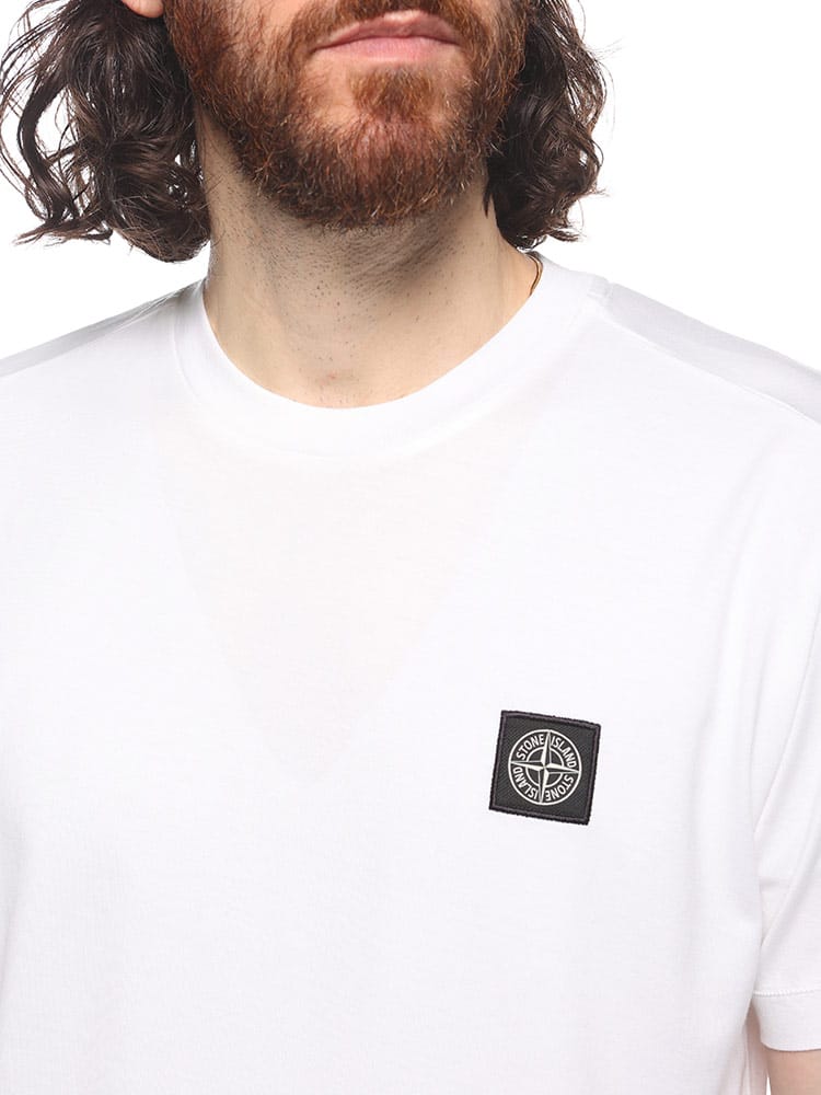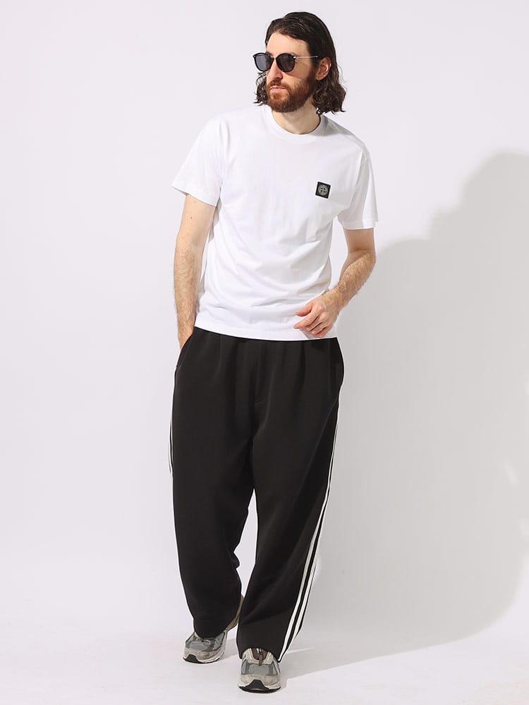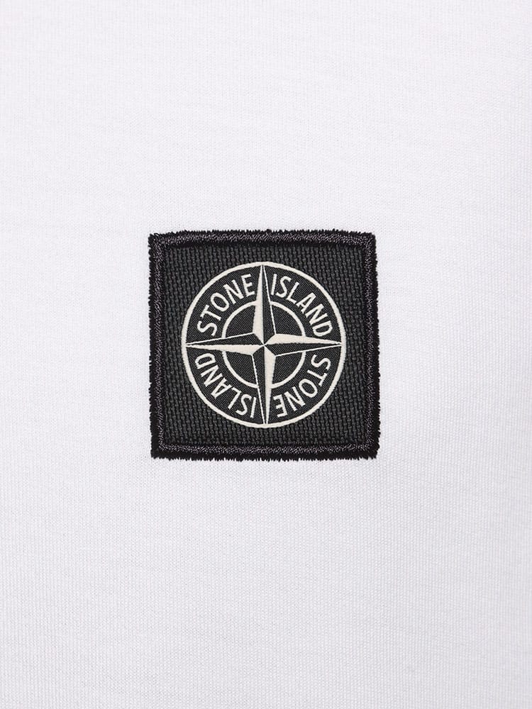 スリムフィット。ネックラインはリブ編み。胸元にStone Islandのロゴであるコンパスをブラックであしらっています。袖口はリブ編み。裾にチェーンステッチ入り。