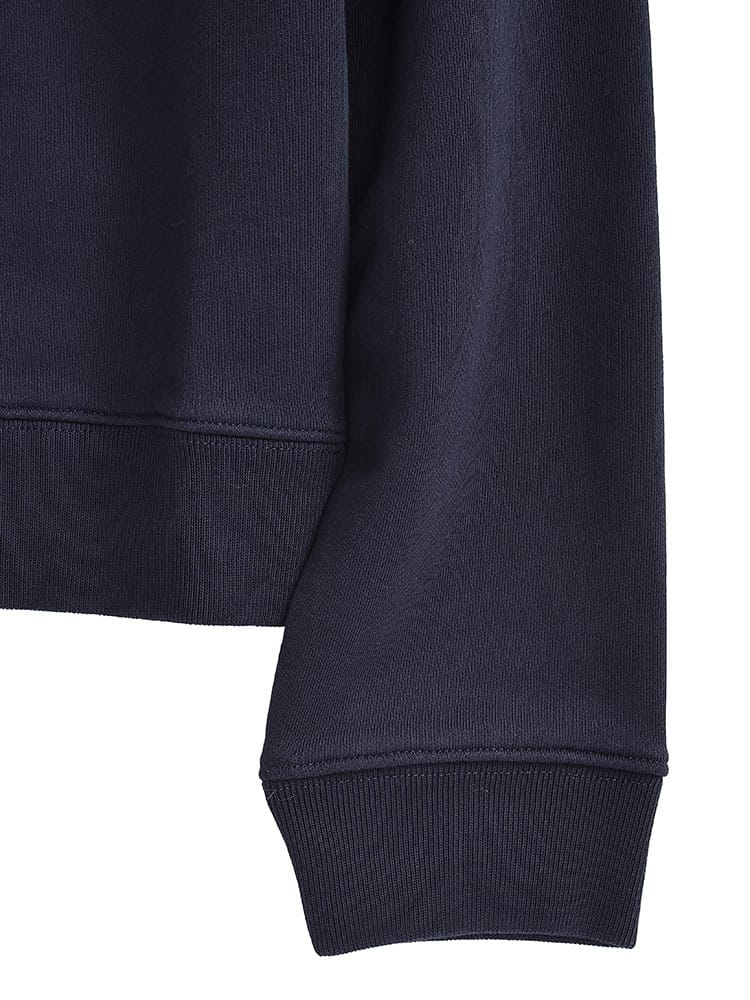 メゾン キツネのアイコニックなフォックスヘッドが胸元に刺繍された、洗練されたデザインのクルーネックトレーナーです。柔らかく肌触りの良いコットン100%の裏毛素材を使用しており、リラックスした着心地が魅力。カジュアルながらも上品な雰囲気を醸し出し、様々なスタイルに合わせやすいアイテムです。