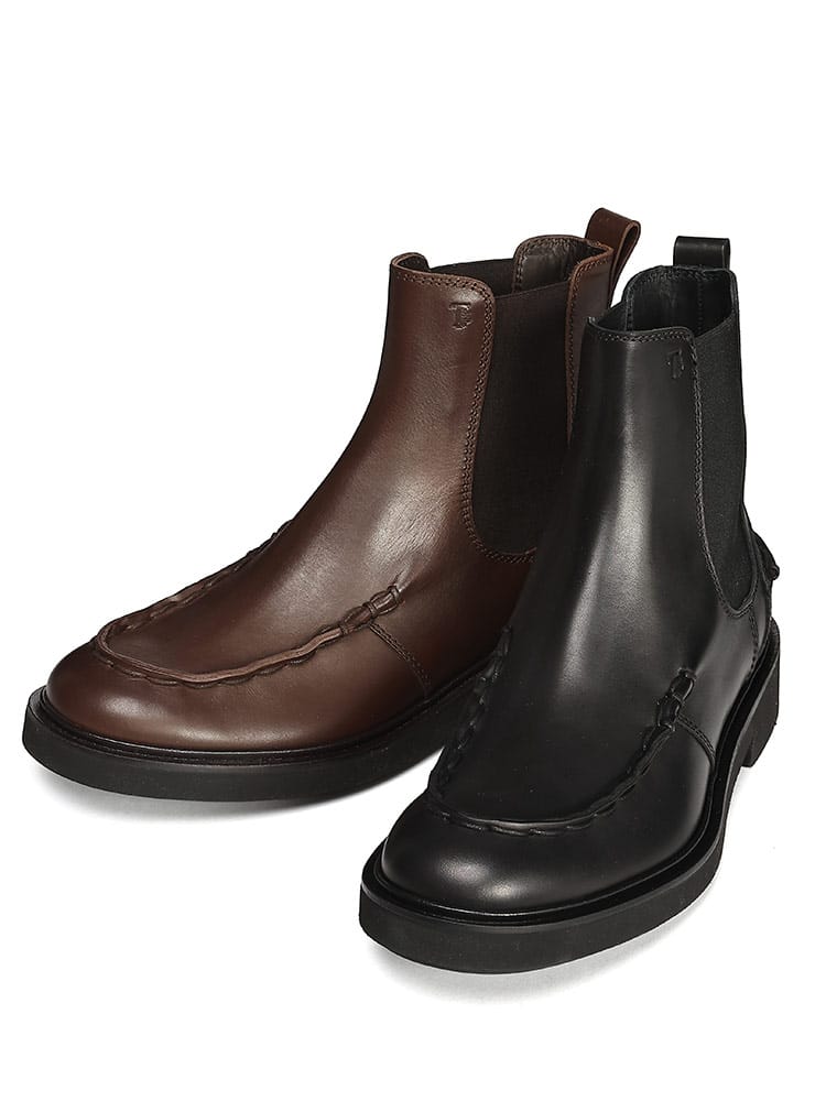 上質なレザーと洗練されたデザインが特徴。サイドゴアが着脱をスムーズにし、Uチップのデザインがクラシカルなアクセントに。カジュアルからビジネスまで幅広く活躍する一足。足元に品格と洗練さをプラスしたい方に。履き込むほどに足に馴染む、至極の履き心地も魅力です。
