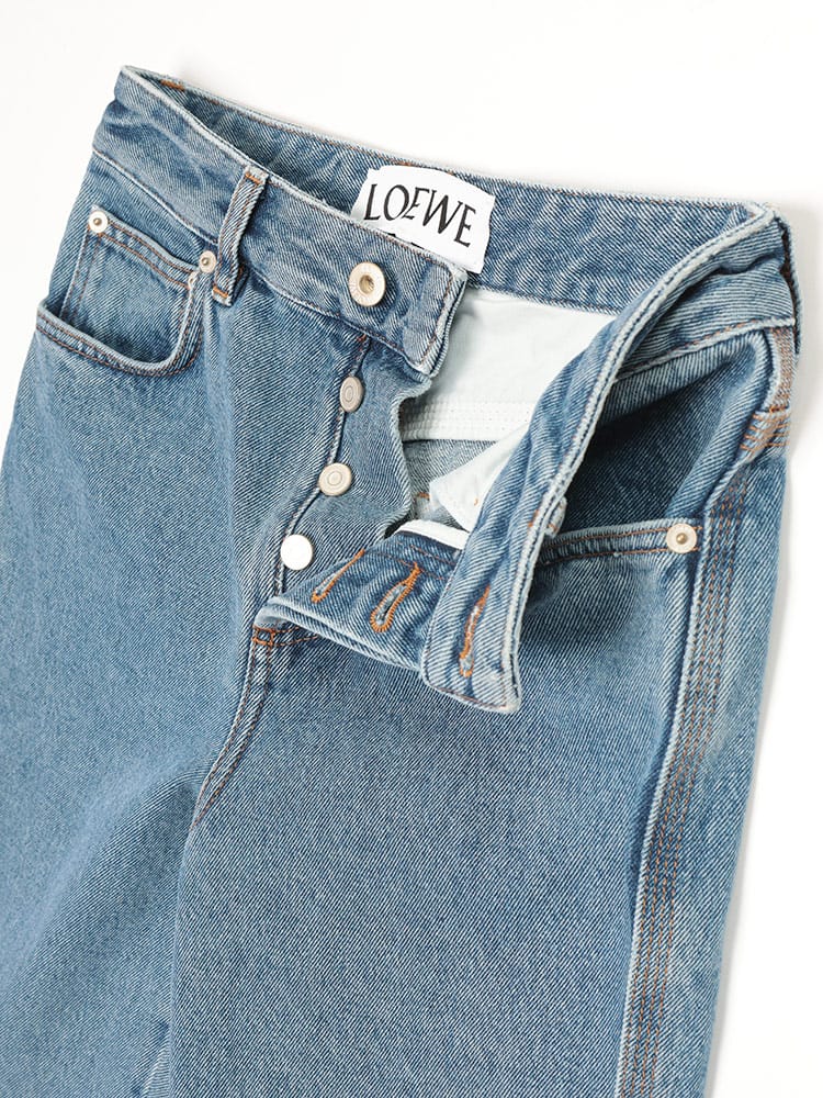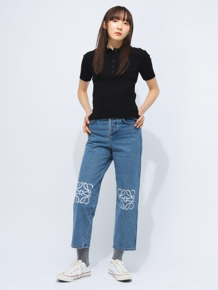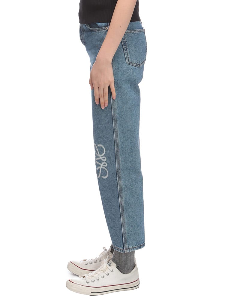 ミディアムウェイトのウォッシュドコットンデニムを採用したアナグラムクロップドジーンズ
