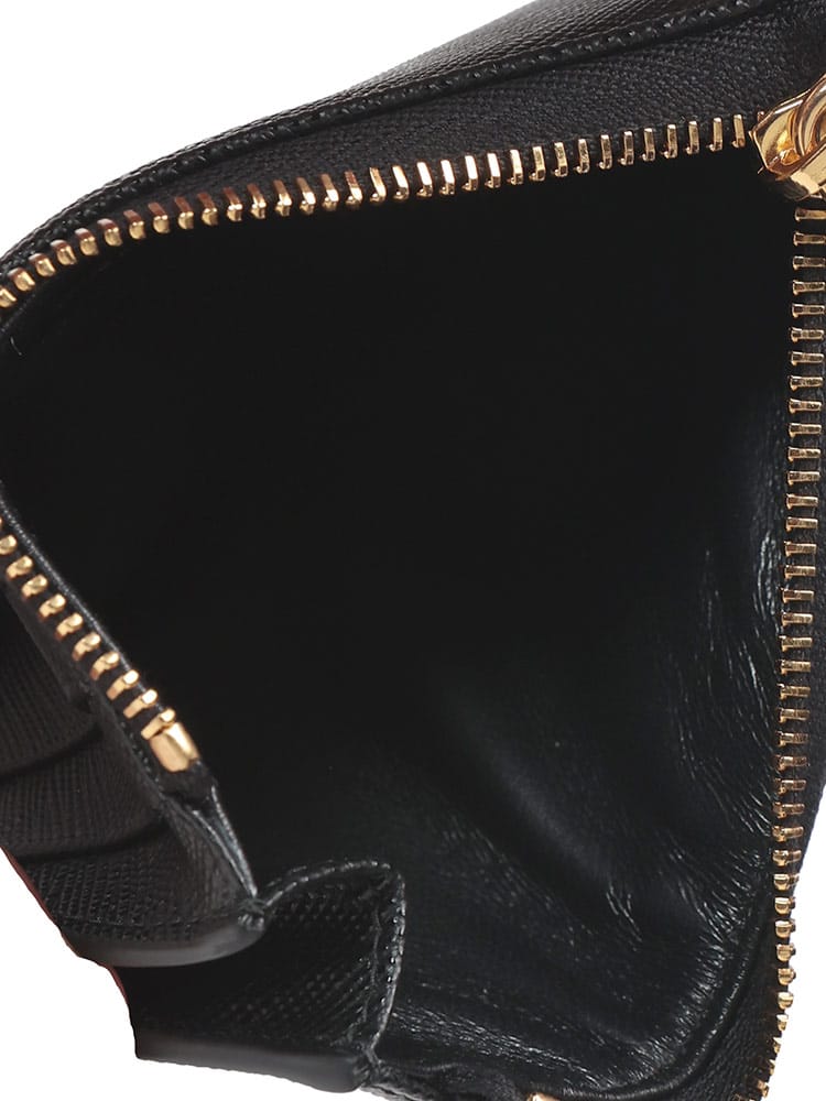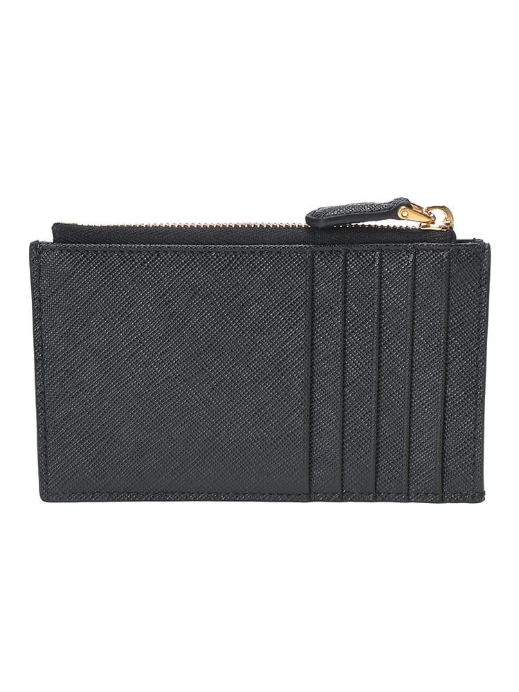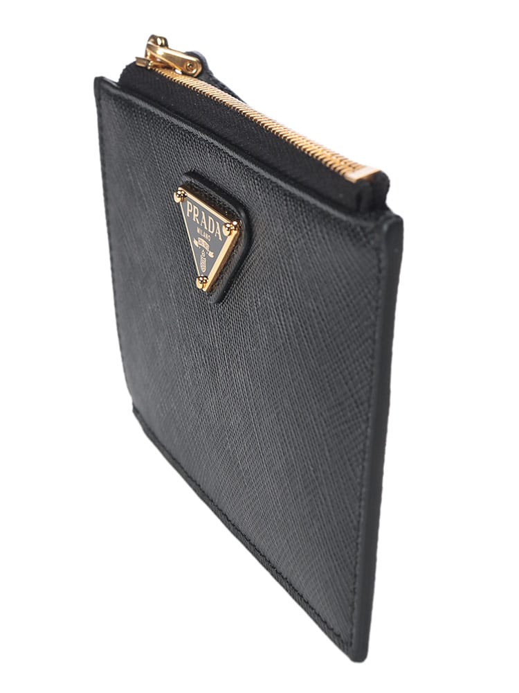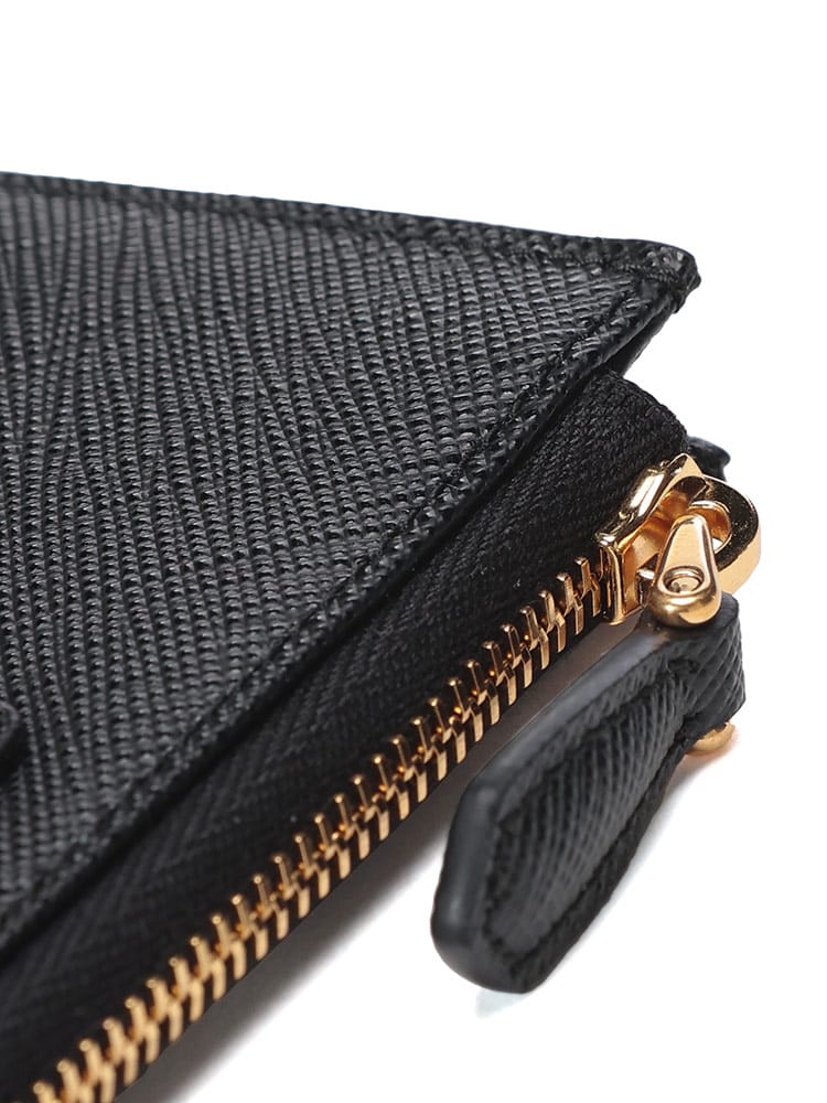プラダを象徴する「サフィアーノ」レザー(牛革)に施された、クロスハッチ加工の独特な質感が特徴です。傷や汚れがつきにくく、長く愛用できます。フロントには、プラダの象徴的なエナメルメタルのトライアングルロゴがあしらわれ、ブランドの存在感をアピールしています。5つのカードホルダーに加え、ファスナー付きのポケットも備え、カードや小銭などを整理して収納できます。コンパクトなサイズ感で、バッグやポケットにもすっきりと収まります。