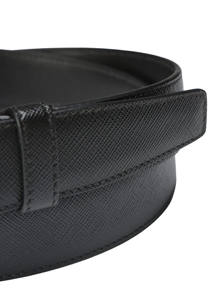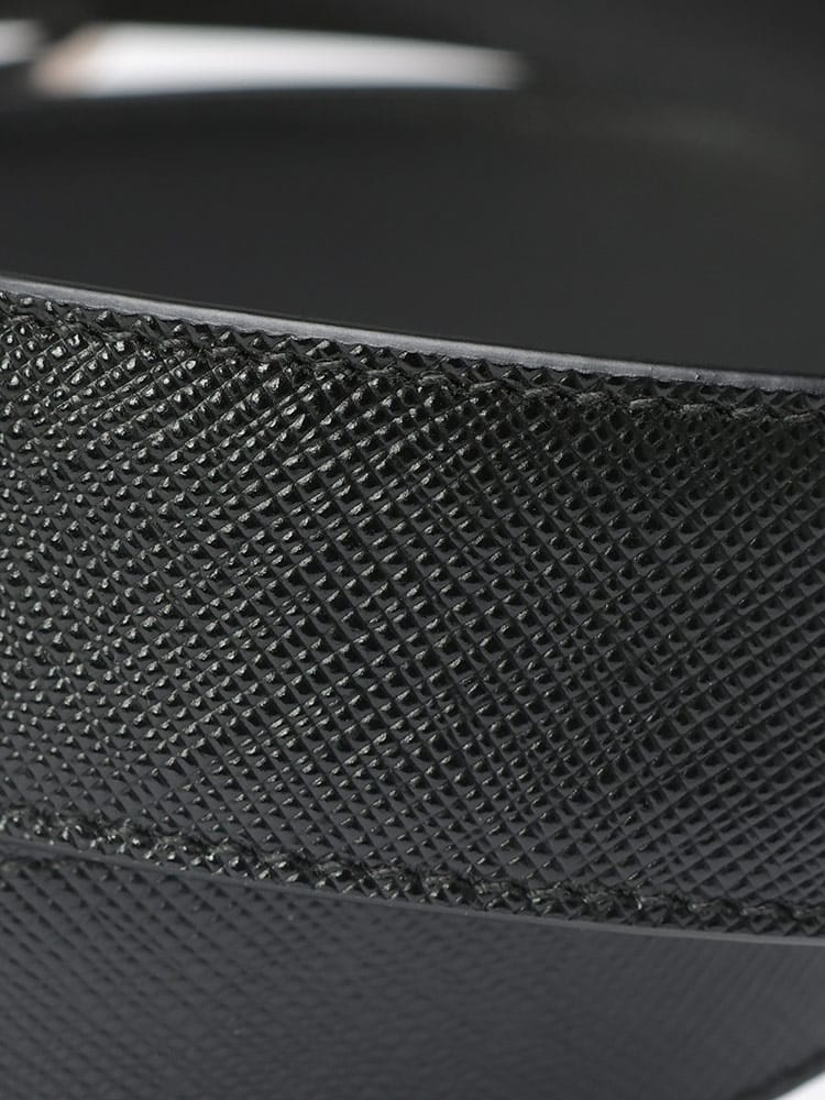 プラダの代名詞とも言える、独特の型押しが施された丈夫なサフィアーノレザーを使用。シンプルながらも洗練されたデザインは、ビジネスシーンからカジュアルなスタイルまで幅広く活躍します。