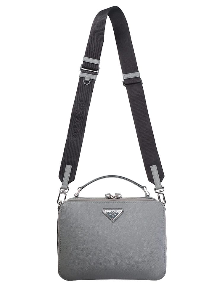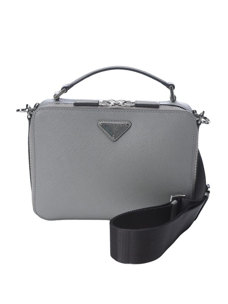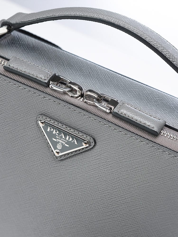 ミニマルを極めた、アイコンレザーのブリックバッグ。PRADAの代名詞であるサフィアーノレザーの魅力を凝縮した、ブリックバッグ。細かな型押しが施されたこのアイコニックな素材は、傷や汚れに強く、持つ人の知的な品格を際立たせます。コンパクトなボックスシルエットは、スマートフォンや財布といった現代の必需品をスマートに収納できるよう設計。クロスボディとしても、手持ちのハンドバッグとしても活躍。フロントに輝くトライアングルロゴが、プラダの揺るぎないステータスを主張します。洗練された機能美を持つ、大人のための相棒です。