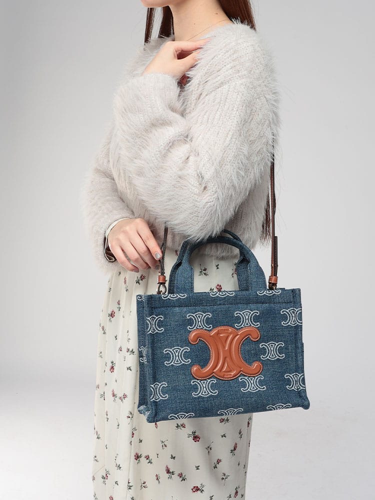 大人のカジュアルを格上げする、カバ タイス。CELINEのフレンチシックなエッセンスが詰まった、スモール カバ タイスのデニムバッグ。カジュアルな上質デニムを使用しながら、トリミングに配されたリッチなレザーが、一気に装いをエレガントなムードへと昇華させます。ボディにあしらわれた大胆なシグネチャーロゴが、セリーヌらしいステートメントを主張。小ぶりながら必需品が収まるサイズ感と、外側のオープンポケットが機能性も確保。クロスボディで軽やかに、大人の余裕とモダンな遊び心を演出する完璧な相棒です。