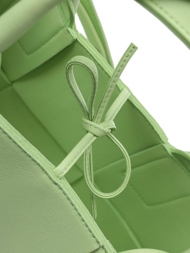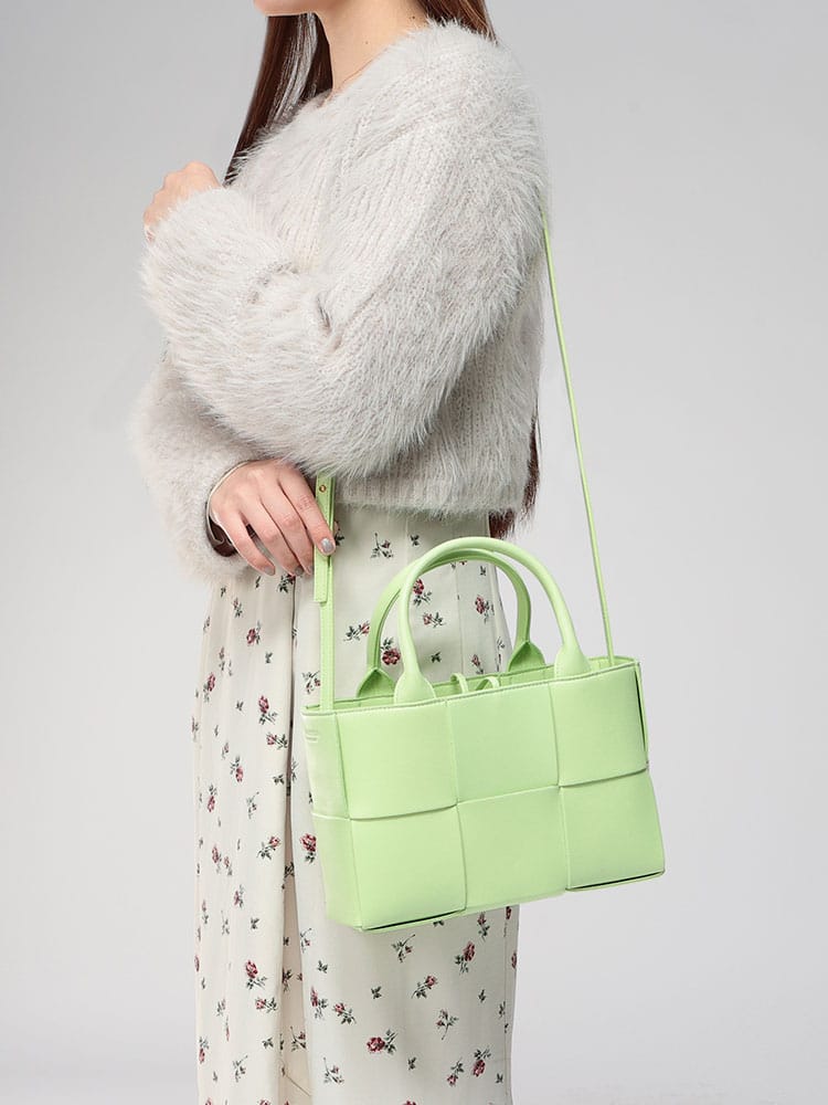 洗練された構造美、ミニマルなアルコ トート。BOTTEGA VENETAが誇るイントレチャートの技術を、構築的なフォルムに落とし込んだミニ アルコ トート。極上のしなやかなレザーで丁寧に編み込まれたテクスチャーは、タイムレスな美しさを放ち、持つ人の優雅な品格を際立たせます。コンパクトながらも、マチのあるデザインで収納力も確保。開口部はオープンで荷物の出し入れがスムーズ。さらに、同素材のポーチが付属し、実用性にも優れます。ショルダーバッグとして軽快に、メゾンの哲学を纏う大人のための逸品です。
