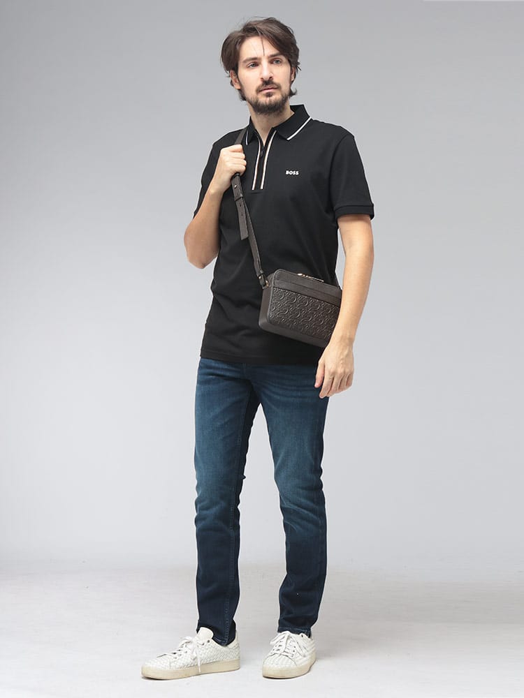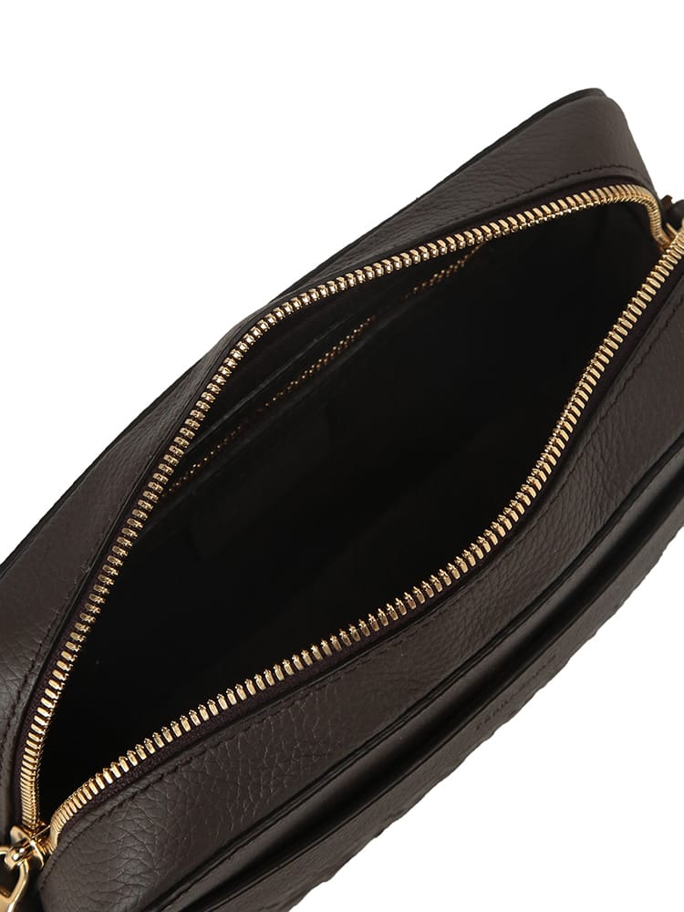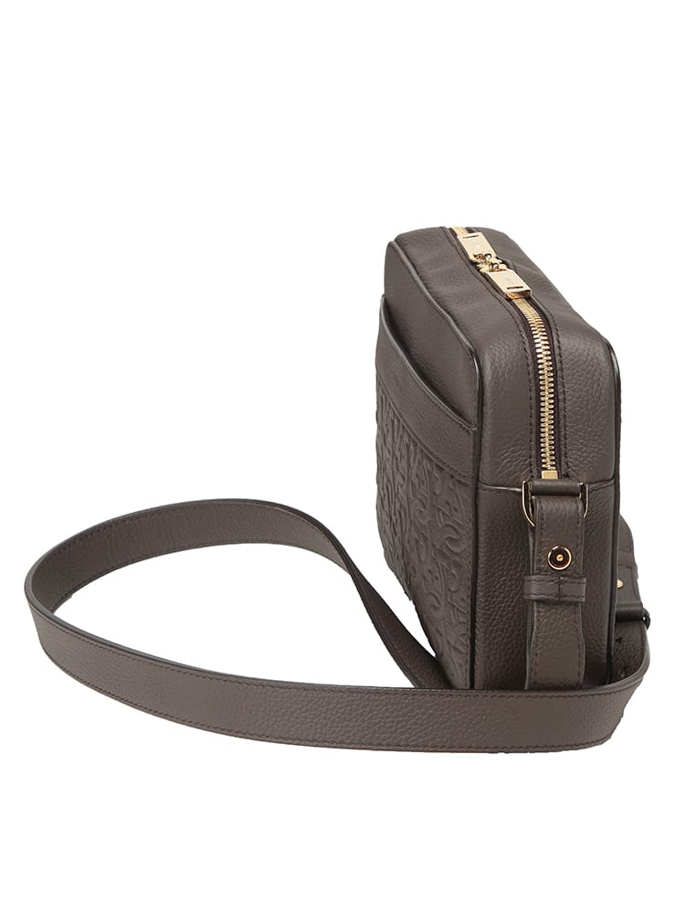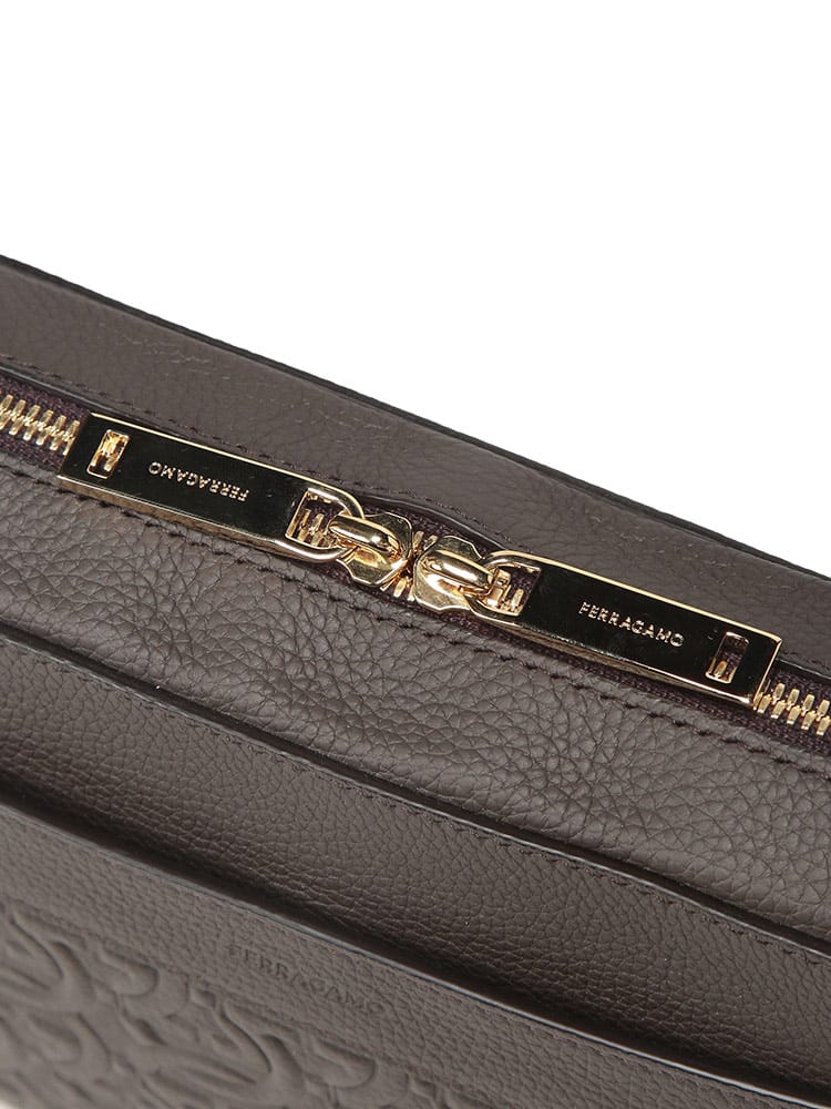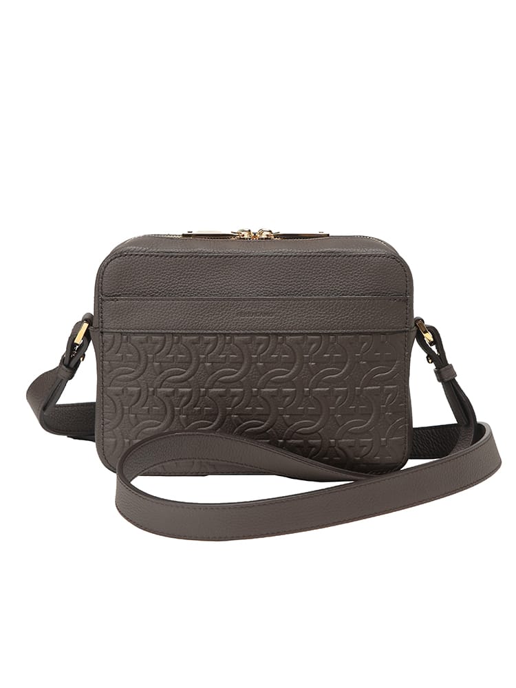 Salvatore Ferragamo(サルヴァトーレフェラガモ)のアイコンである「ガンチーニ」をエンボス加工で大胆に施した、洗練美溢れるメンズショルダーバッグ。高級感漂うレザーの質感が、大人のカジュアルスタイルを格上げします。無駄を削ぎ落としたコンパクトなフォルムながら、メイン収納はジップ仕様でセキュリティ面も安心。外側にはスムーズな開閉を叶えるマグネットポケット、内側には整理整頓に便利なジップポケットとオープンポケットを備え、機能性も徹底追求されています。体に馴染むボディバッグとして、休日のお出かけや旅行先でもスマートな立ち振る舞いを演出。伝統あるイタリアのクラフトマンシップと現代的なデザインが融合した、長く愛用できる名品です。