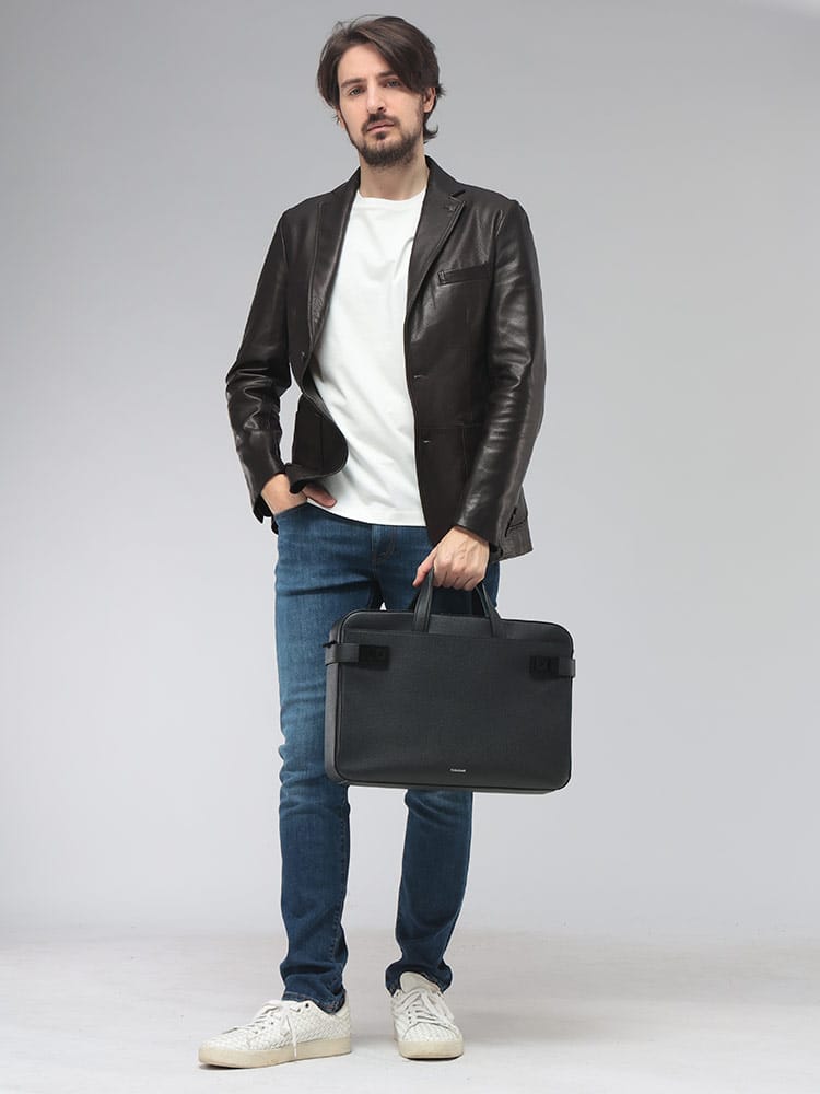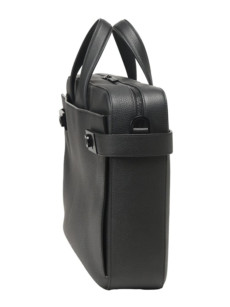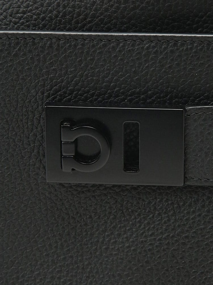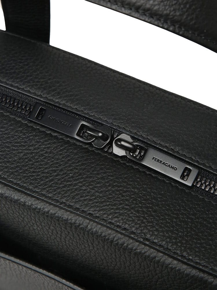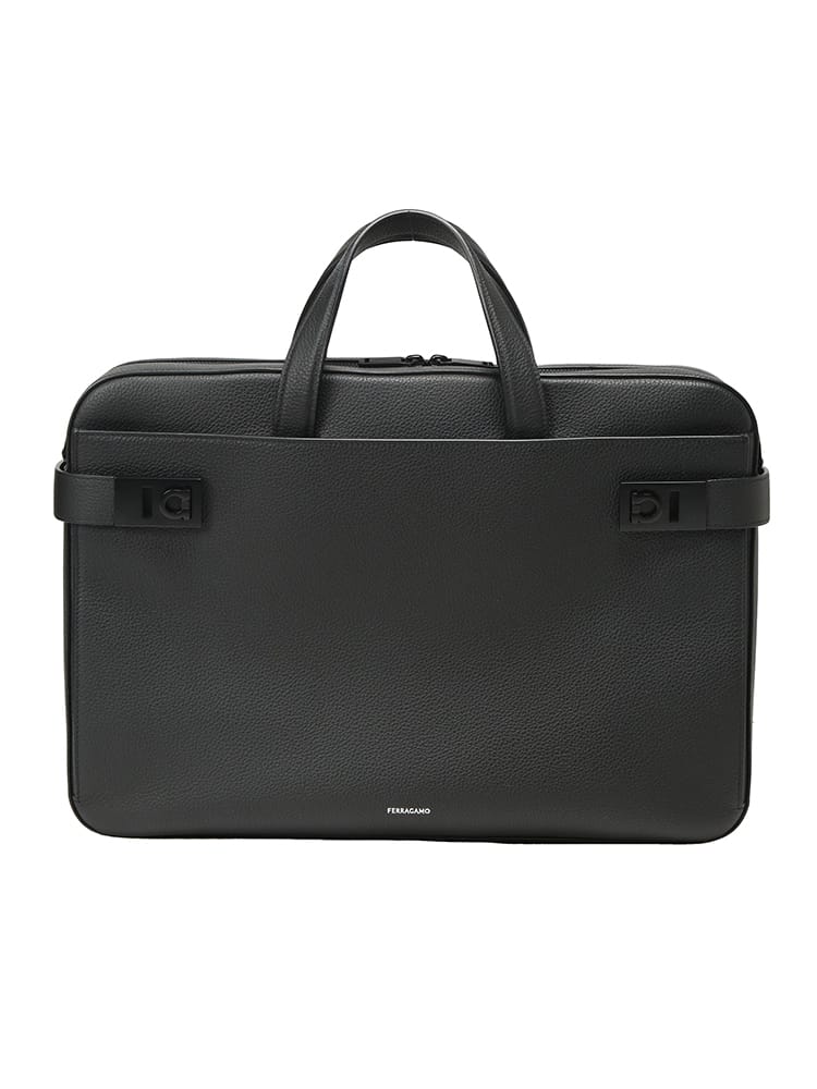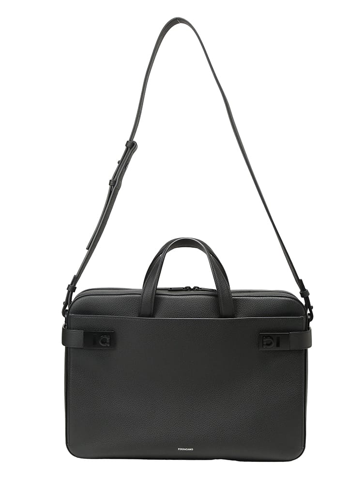 Salvatore Ferragamo(サルヴァトーレフェラガモ)の美学を象徴する「ガンチーニ」が目を引く、最高級カーフレザーを使用した2WAYブリーフバッグ。洗練されたミニマルなシルエットが、都会的で知的なビジネススタイルを完成させます。メイン収納はジップ開閉で中身をしっかりと保護し、内側にはジップポケットと2つのオープンポケットを配して小物の整理も容易に。外側のマグネットポケットは、頻繁に使用するアイテムをスマートに出し入れできる機能的な仕様です。付属のストラップでショルダーとしても愛用でき、手提げトートとの使い分けが可能。通勤から重要な会議まで、圧倒的なクラス感を放つイタリアンクラフトマンシップの結晶をぜひその手に。