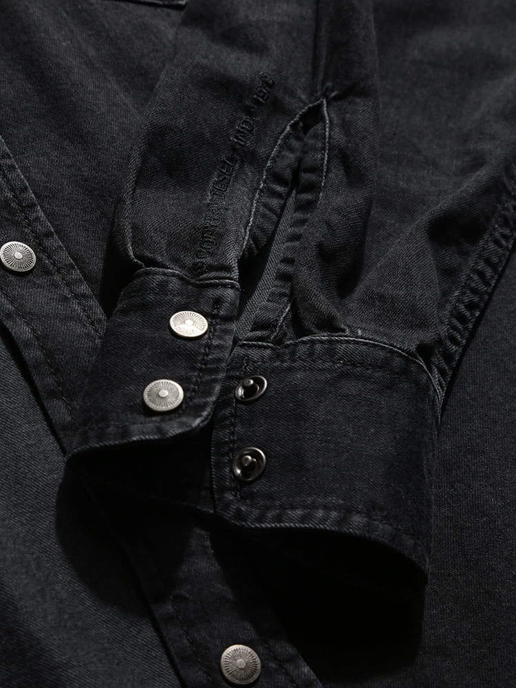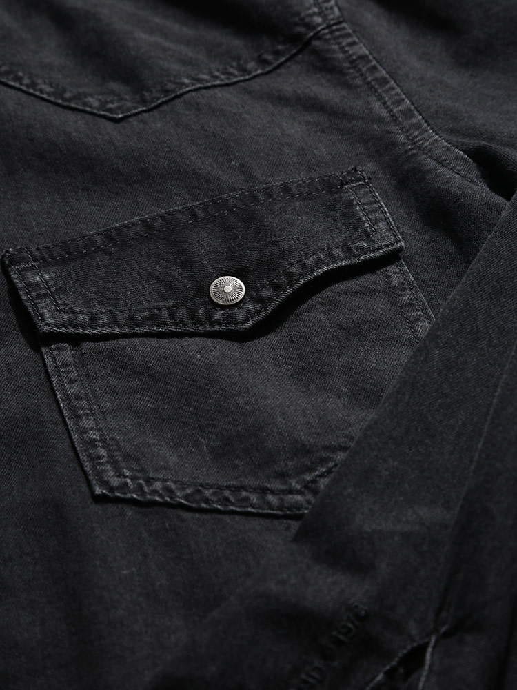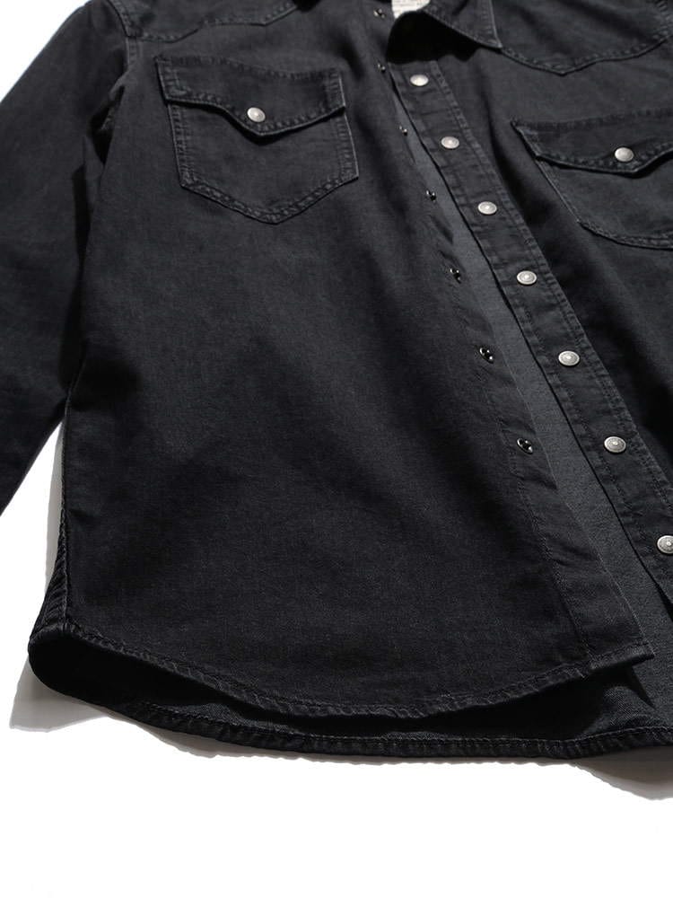・ユーズド感のあるデニム生地を使用したポケット 長袖 ウエスタンシャツ