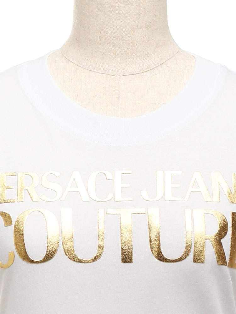 ・フロントのゴールドロゴプリントがエレガントなクルーネック 半袖 Tシャツ