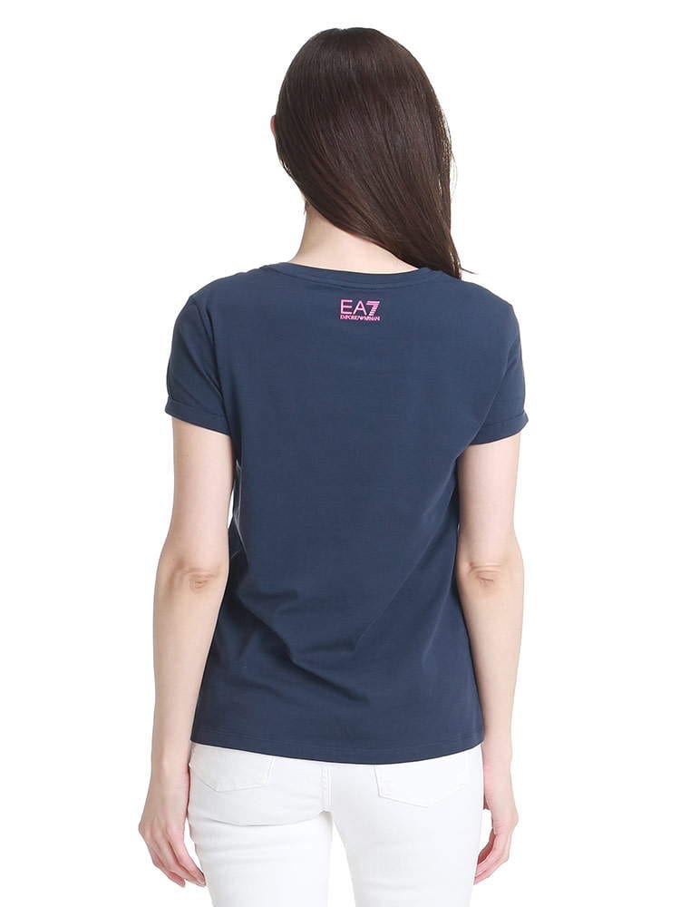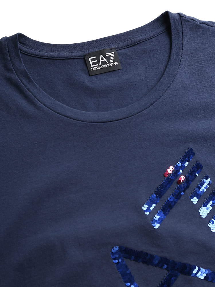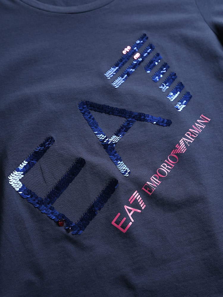 ・斜めロゴのスパンコールがポイントになったクルーネック 半袖 Tシャツ