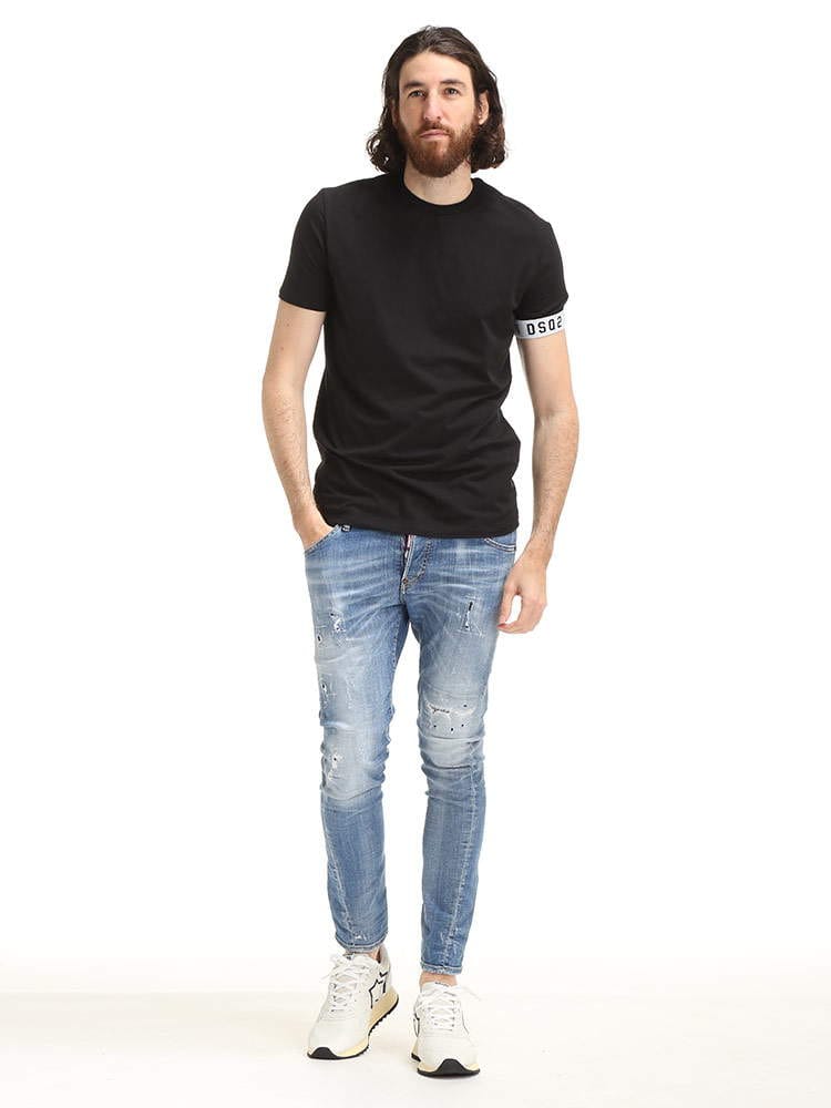 DSQUARED2 (ディースクエアード) 袖ロゴライン クルーネック 半袖 アンダー Tシャツ D2D9M3S3450
