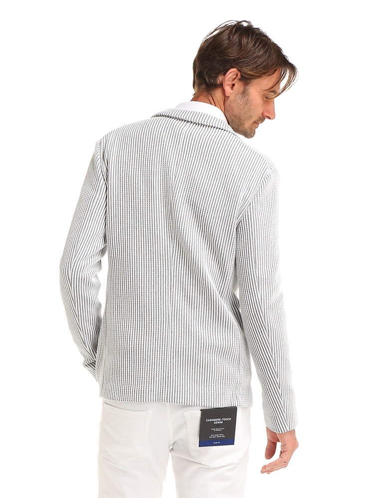 ・スタイリッシュなストライプデザインのシングル 2ツ釦 ニット ジャケット