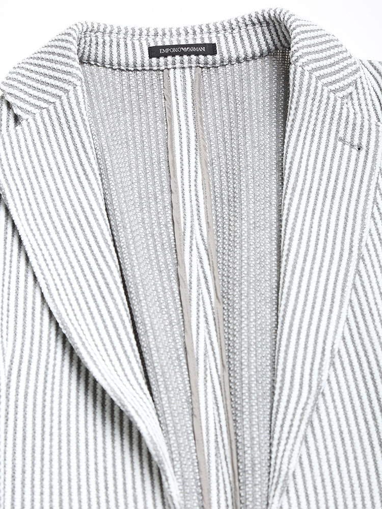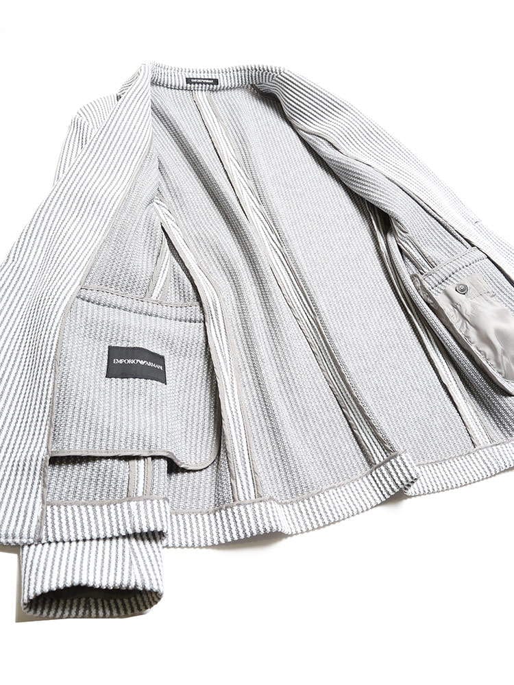 EMPORIO ARMANI (エンポリオアルマーニ) ストライプ シングル 2ツ釦 ニット ジャケット EAA1G870A1437