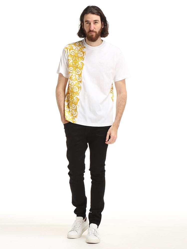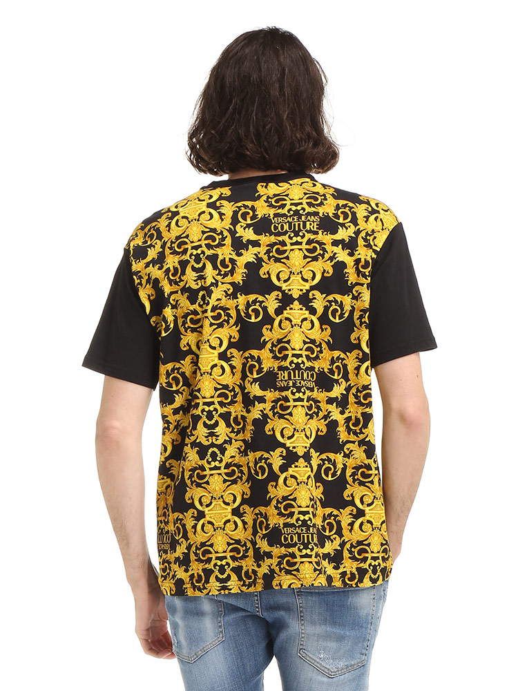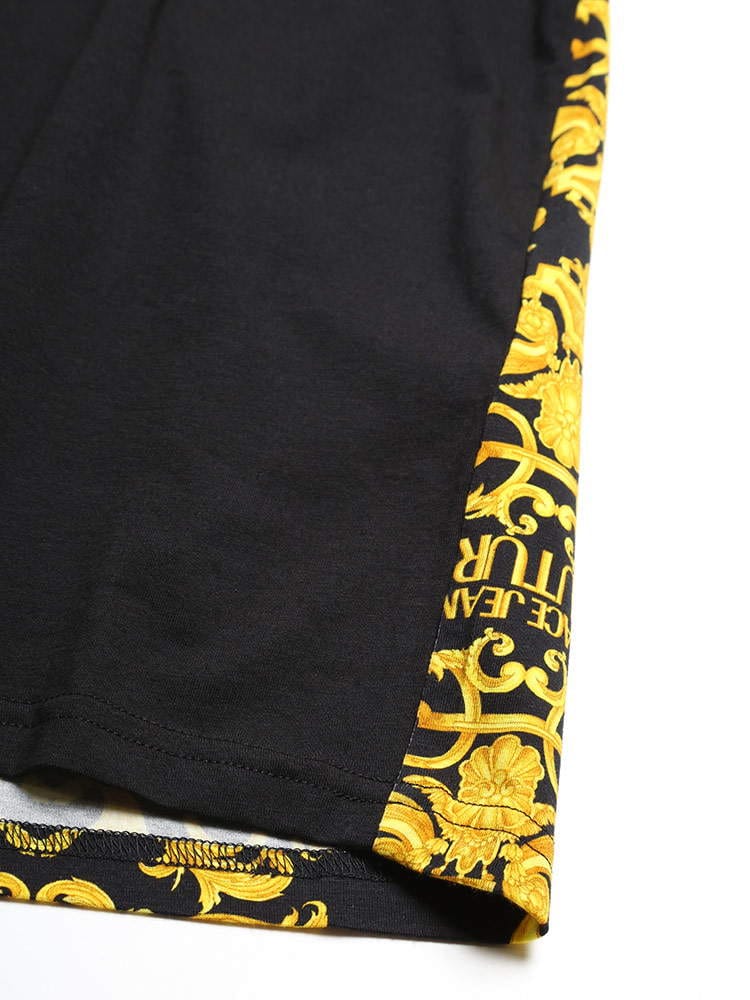 ・バロックプリントの切り替えデザインがエレガントなクルーネック 半袖 Tシャツ
