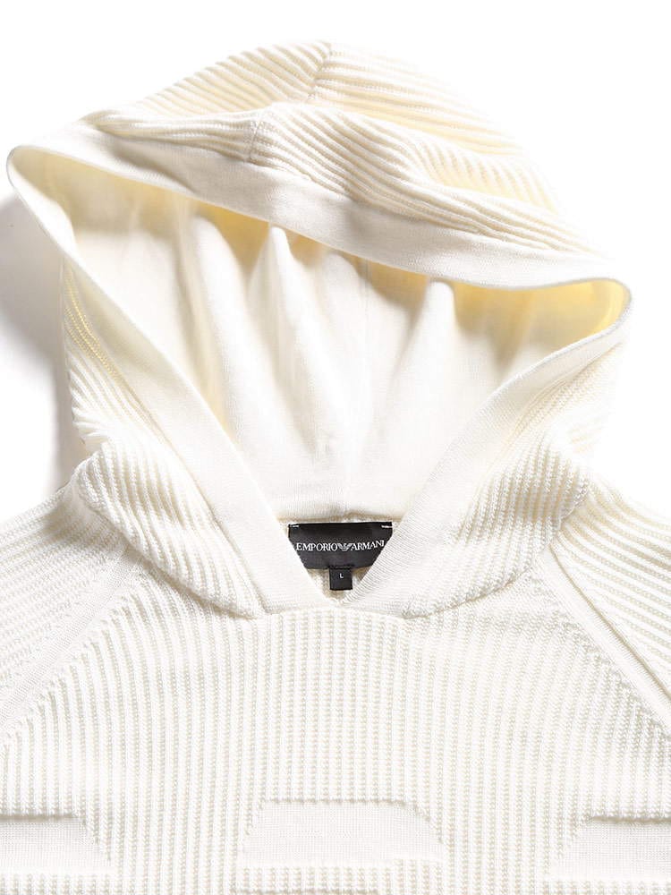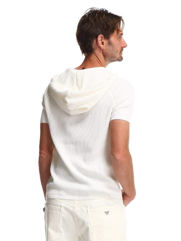 ・フロントのBIGマークがポイントになったフード プルオーバー 半袖 ニット
