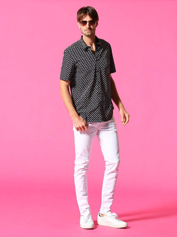 ・ロゴ総柄デザインがキャッチーな半袖 シャツ