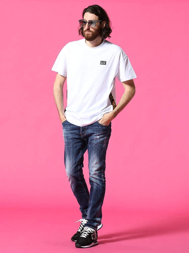 EMPORIO ARMANI EA7 (エンポリオアルマーニ) サイドレインボーロゴ クルーネック 半袖 Tシャツ EA3KPT13PJ02Z