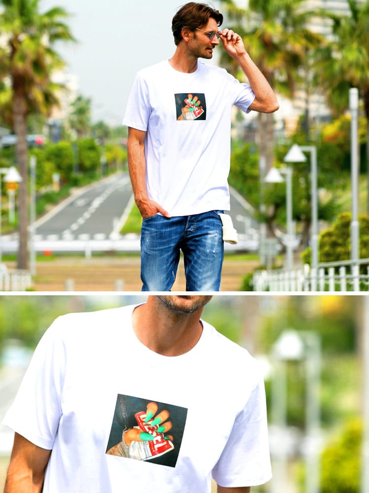 ・フォトプリントがアイキャッチなクルーネック 半袖 Tシャツ