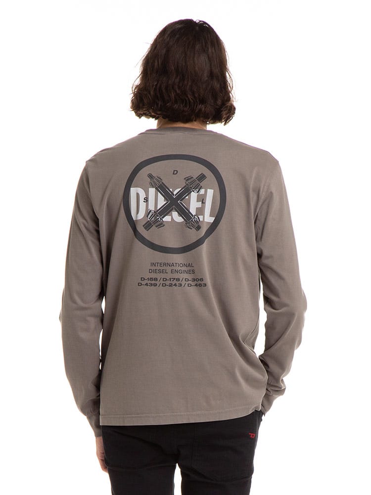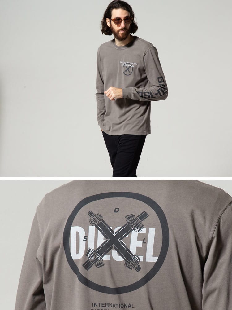 DIESEL (ディーゼル) プリント クルーネック 長袖 Tシャツ DSA02788GRAG