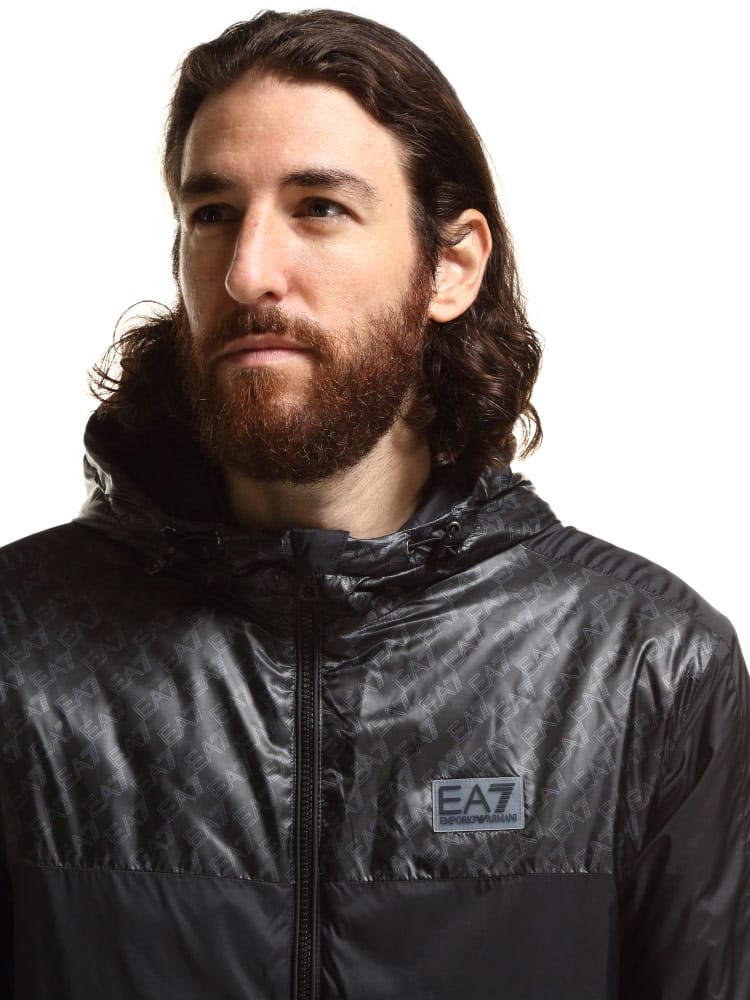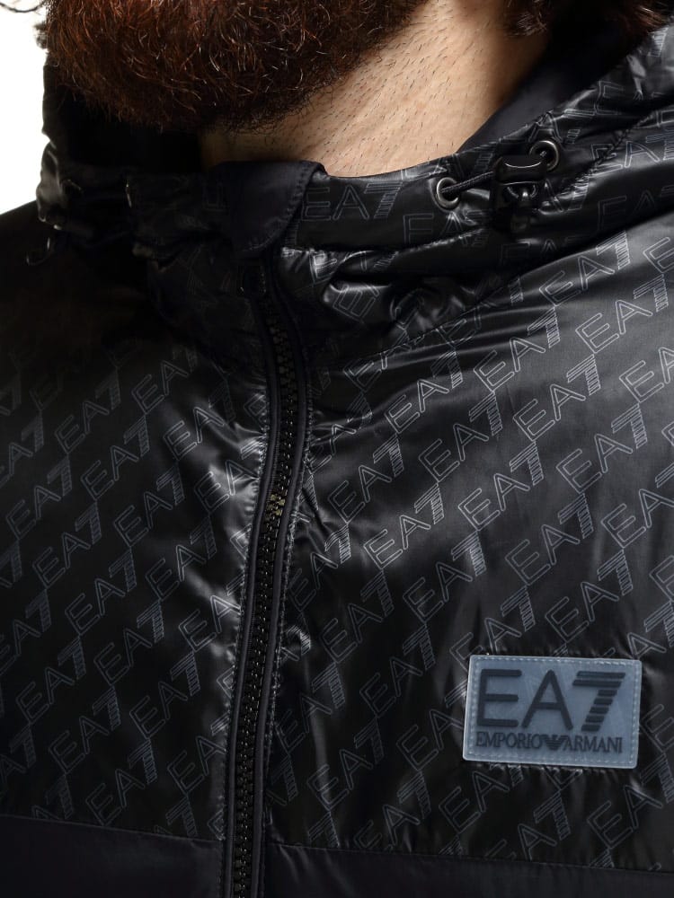 EMPORIO ARMANI EA7 (エンポリオアルマーニ) ハーフ総ロゴ フード フルジップ 中綿 ブルゾン EA6KPB18PNR4Z