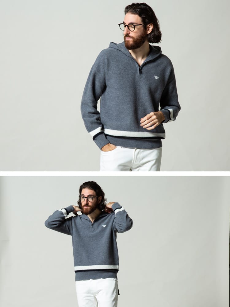 素材 :[本体]羊毛100% [リブ部分]羊毛90% ナイロン9% ポリウレタン1% [フード裏地]羊毛100%