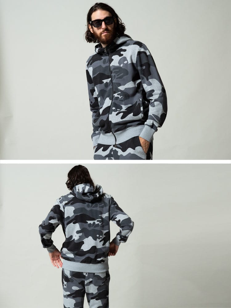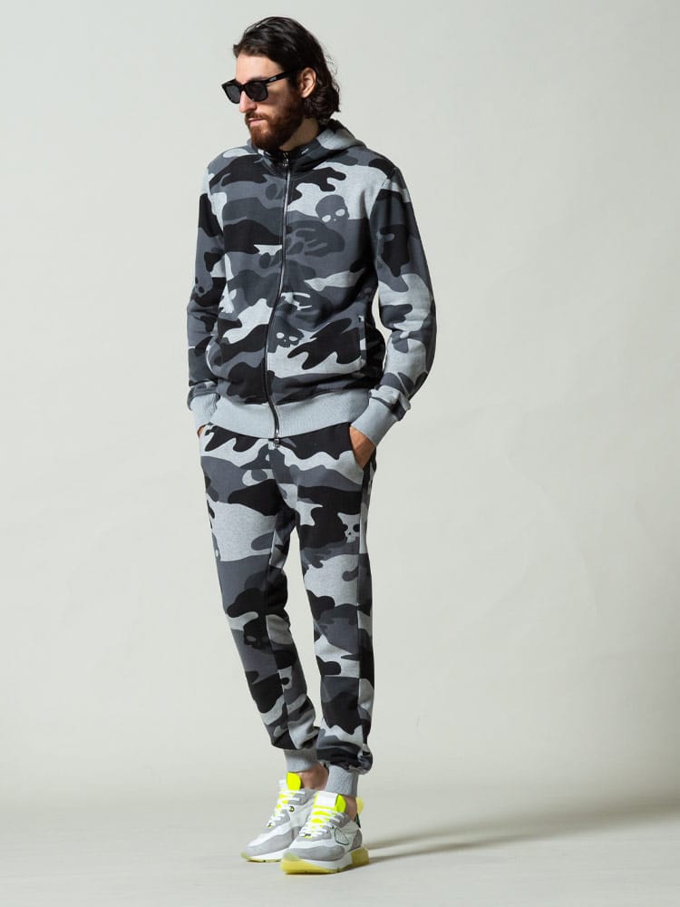 ハイドロゲン メンズ HYDROGEN 迷彩 スカル 総柄 パーカー ロングパンツ セットアップ ブランド 上下セット スウェット カモフラージュ HY290102104