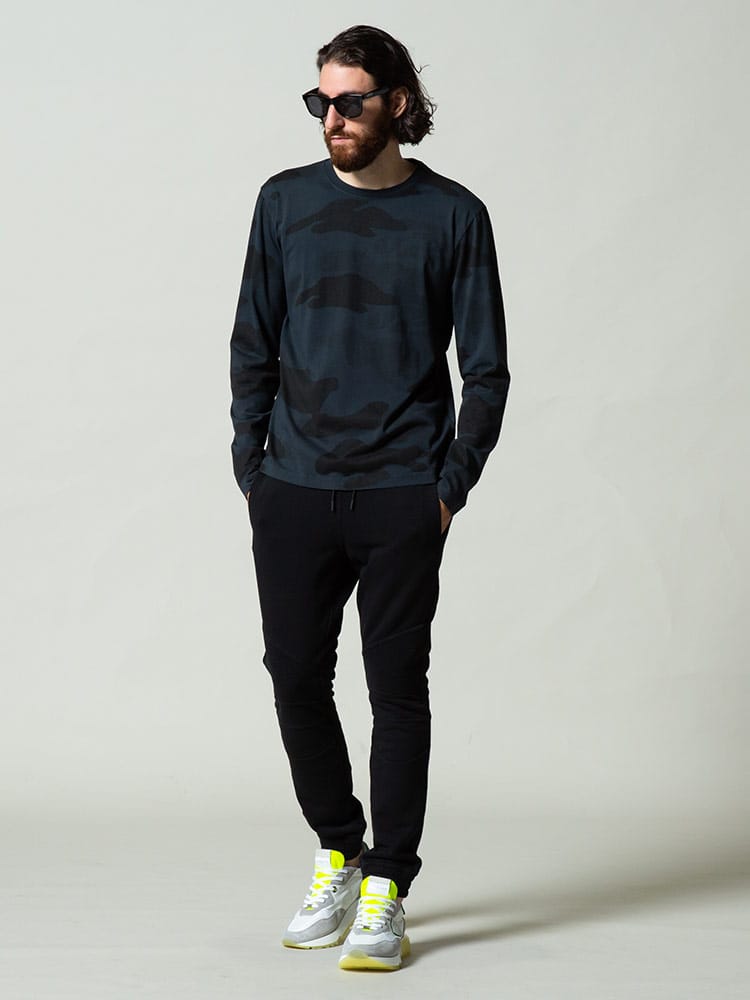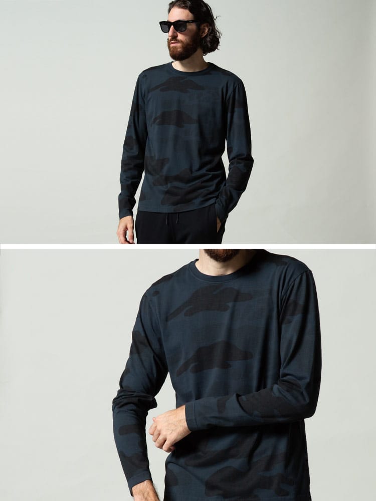 ハイドロゲン メンズ HYDROGEN 迷彩 スカル 総柄 クルーネック 長袖 Tシャツ ブランド トップス ロンT カモフラージュ HY290106