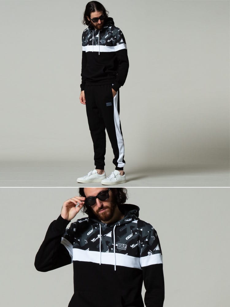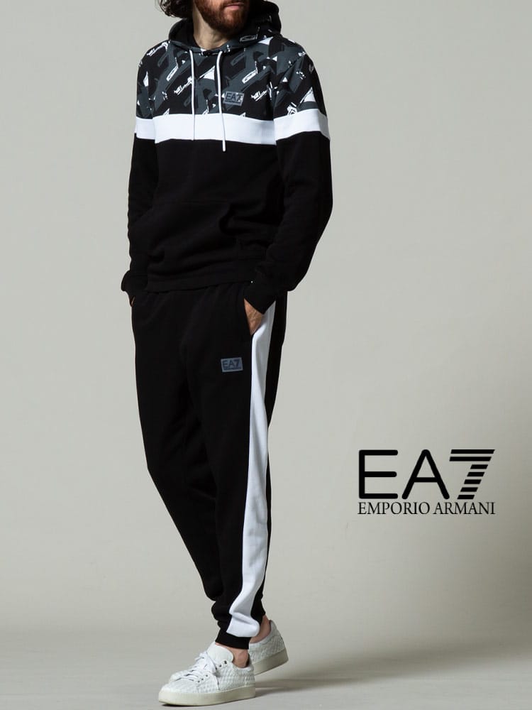 EMPORIO ARMANI EA7 エンポリオアルマーニ ジオメトリック プルオーバー パーカー スウェット セットアップ ブランド メンズ 上下セット EA6KPM82PJ07Z