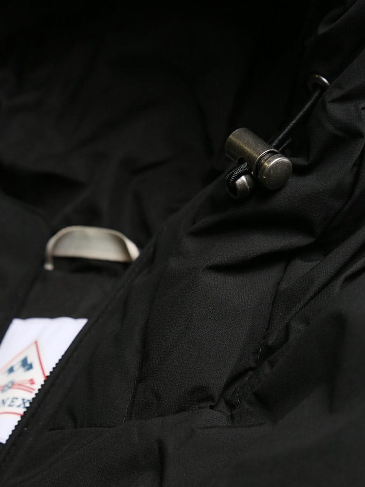 素材 :[表地]ポリエステル100% [下側]ポリウレタンラミネート [裏地]ポリエステル100% [中綿]ダウン90% フェザー10%