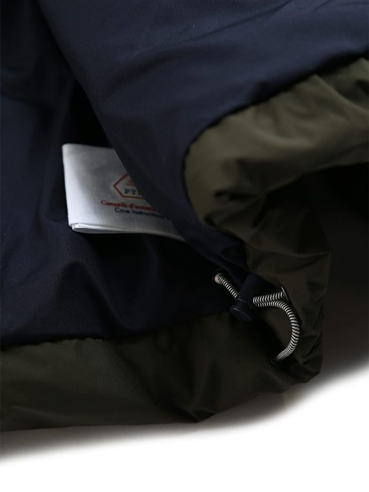 素材 :[表地]ポリエステル100% [下側]ポリエステルラミネート [裏地]ポリエステル100% [裏地]ダウン90% フェザー10%