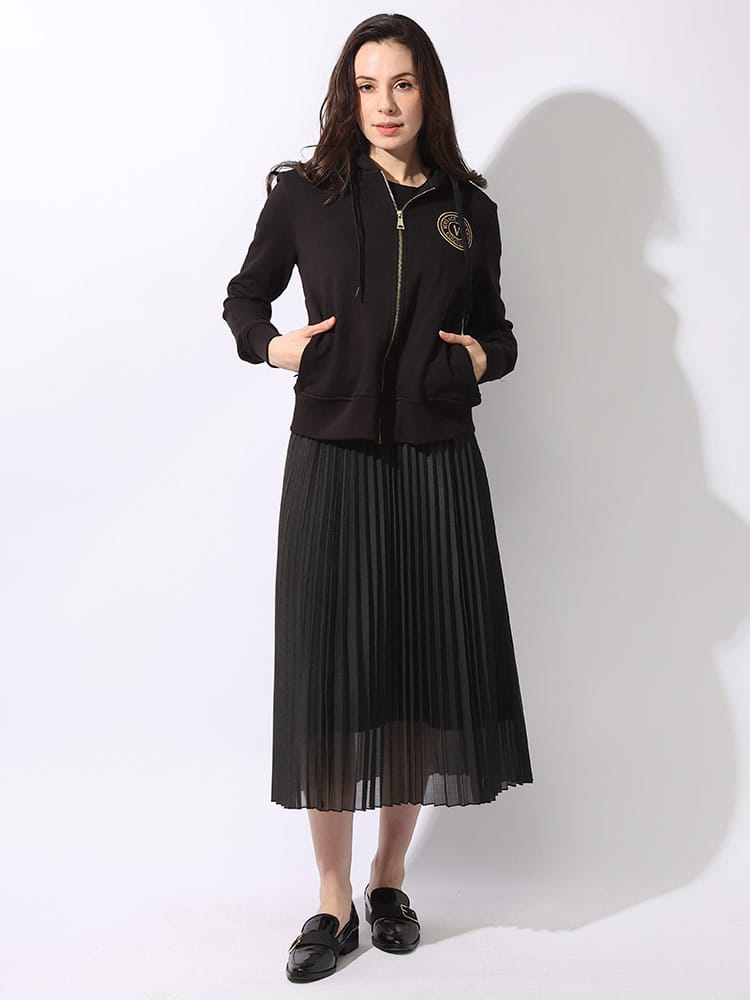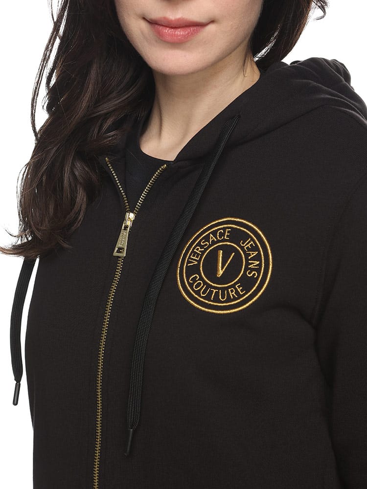 柔らかなフリース地の裏地が魅力の、フード付きスウェットシャツ。レターV エンブレム ロゴ プリントを胸元にあしらい、フロント面をジッパーで仕上げたデザイン。