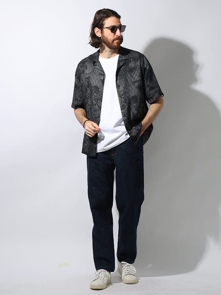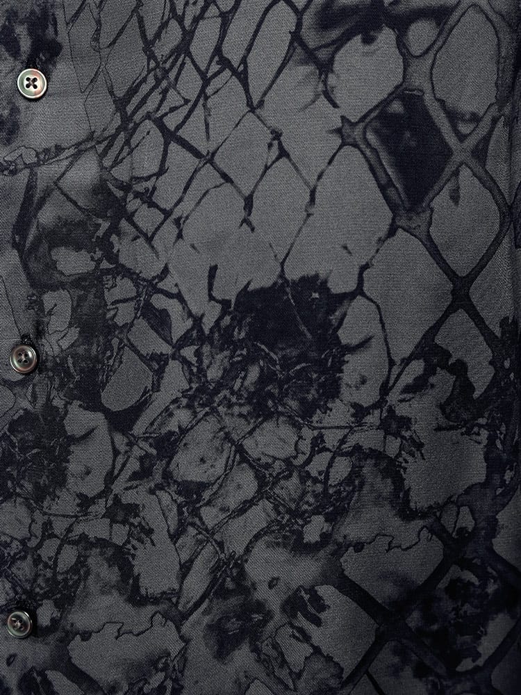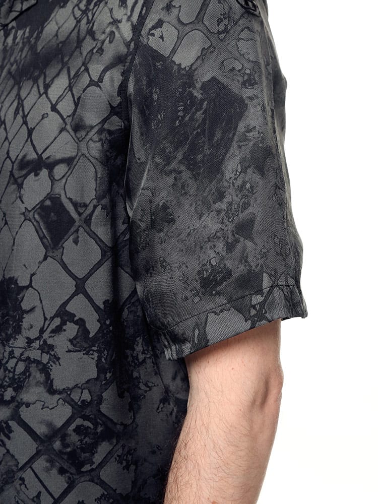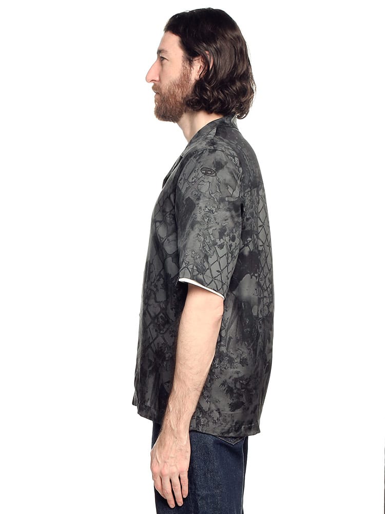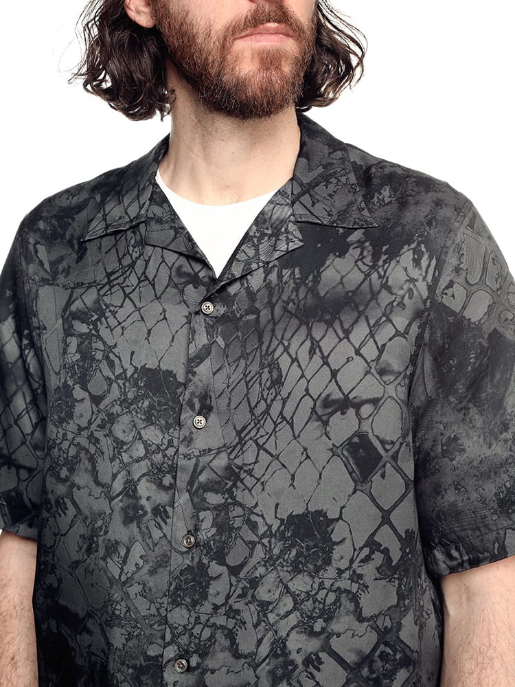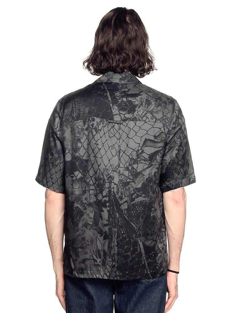 ビスコースツイル生地にカモフラワーと呼ばれるグラフィックを落とし込んだ総柄の開襟シャツ。