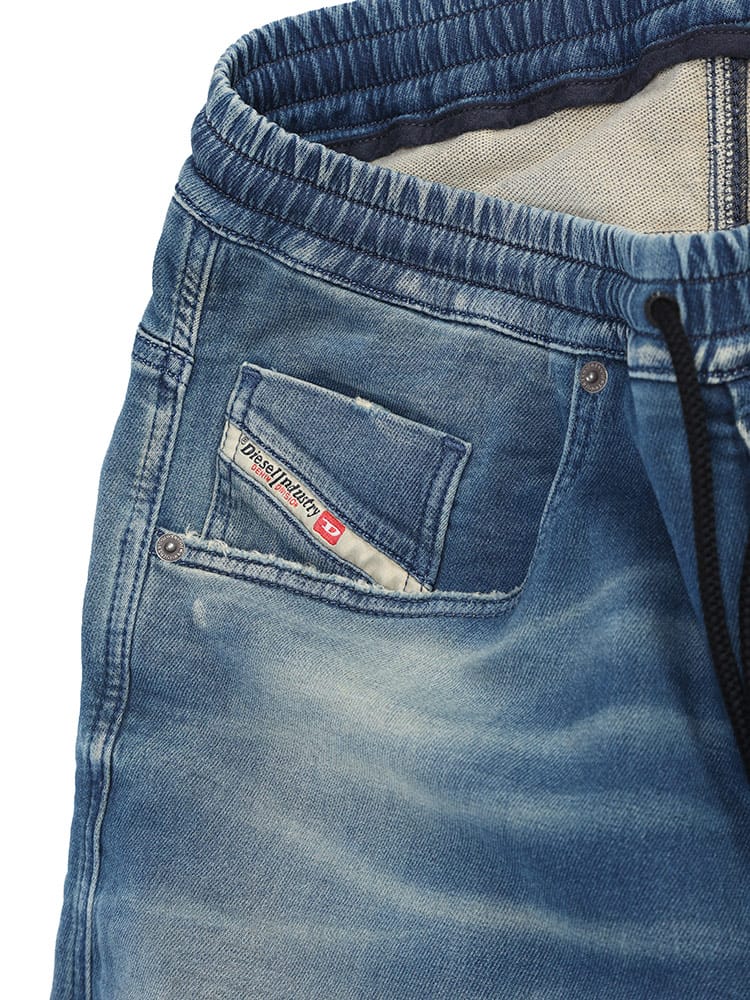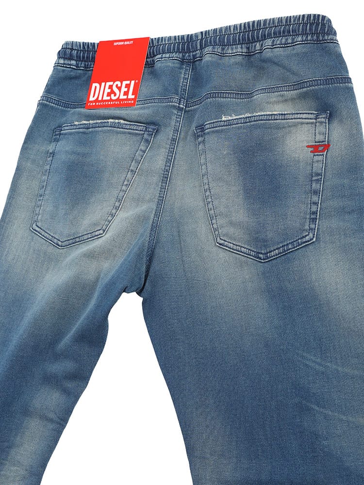 レギュラータイプのウエストと、足首に向かってスリムになっていくシルエットが特徴のテーパードスタイル。最高の快適さを追求したジョグジーンズで作られたこの洗練されたスタイル。刺繍された赤いDロゴと伸縮性のあるウエストバンドが特徴です。