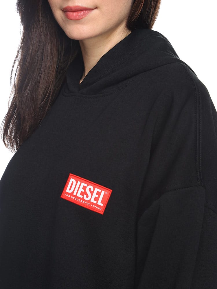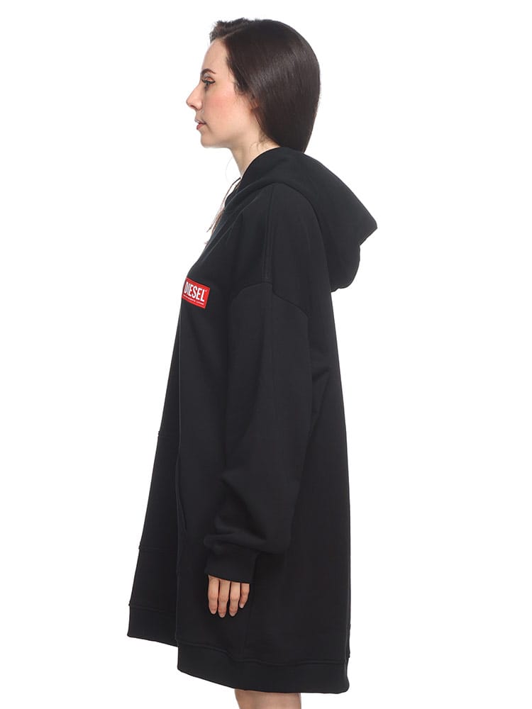 パーカーワンピース D-Boxtは、カジュアルでありながらエレガントなデザインのレディースアイテムです。左胸に小さくDIESELのボックスロゴが入り、シンプルながらブランドの存在感を示します。
