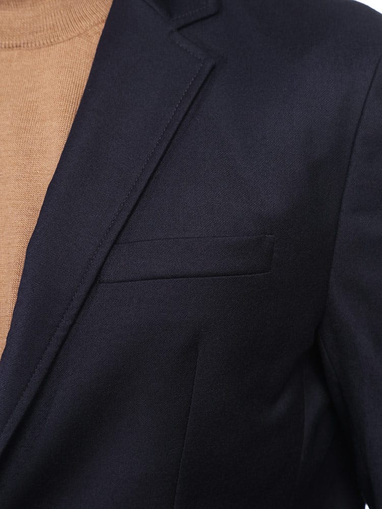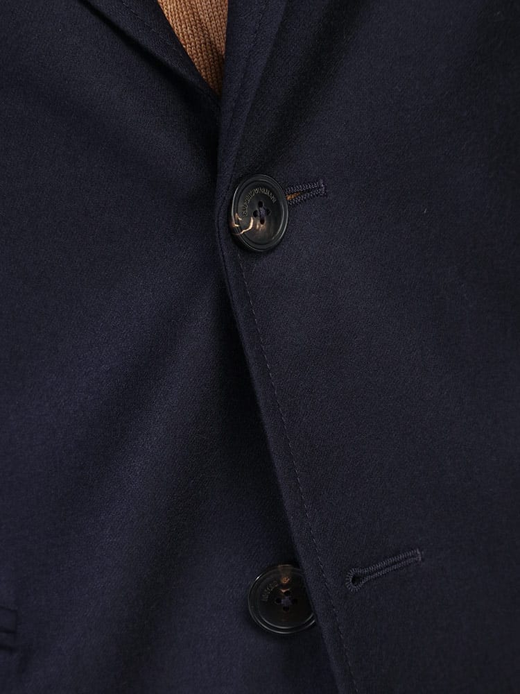 ラペルの付いたシングルブレストジャケット。ひときわ肌触りの柔らかな、ストレッチバージンウールのフランネルで仕立てています。
