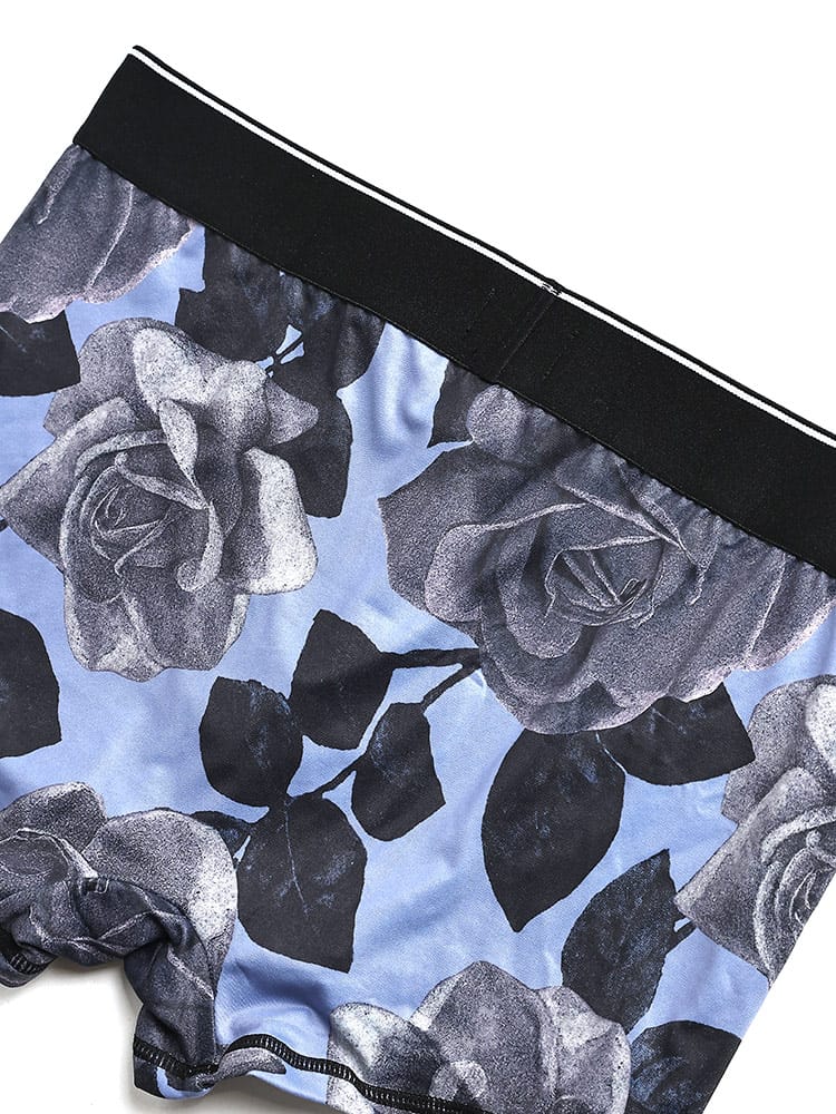 エレガントなフラワー模様が目を引くボクサーパンツ。デザインを引きしめるブラックのジャカードロゴ入りウエストバンド。