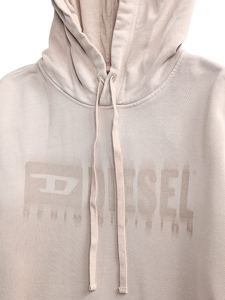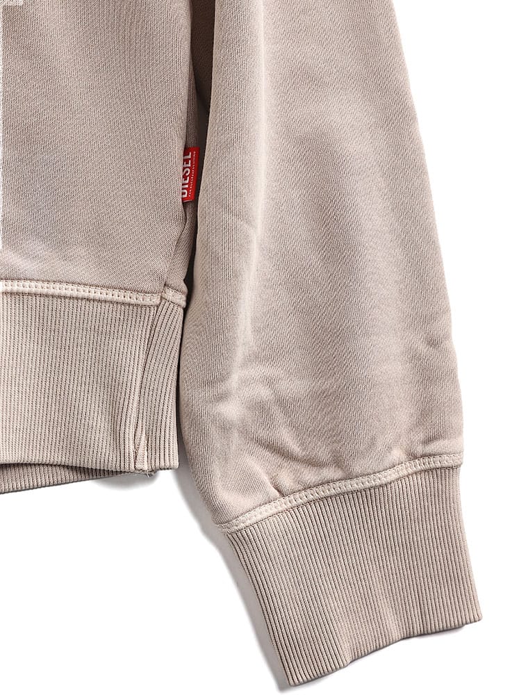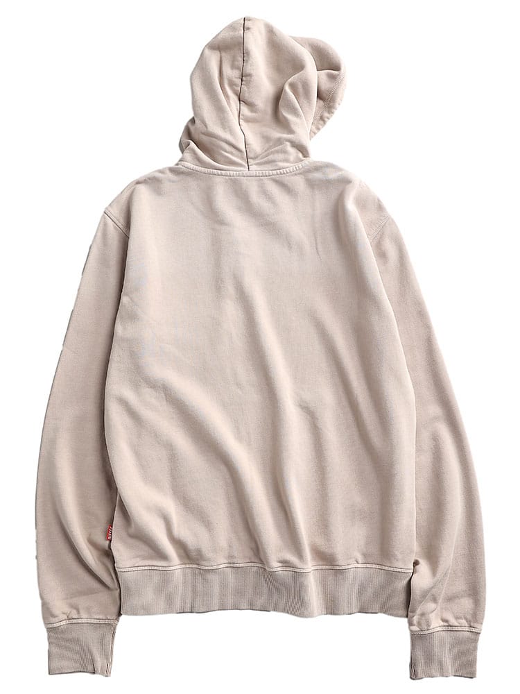 ディーゼルらしい大胆なロゴプリントが目を引く、裏毛素材のプルオーバーパーカーです。柔らかく肌触りの良いコットン100%の本体に、程よいフィット感のリブがアクセント。カジュアルな中にもディーゼルならではの洗練されたデザインが光ります。カンガルーポケット付きで機能性も抜群。一枚でコーディネートの主役になるアイテムです。