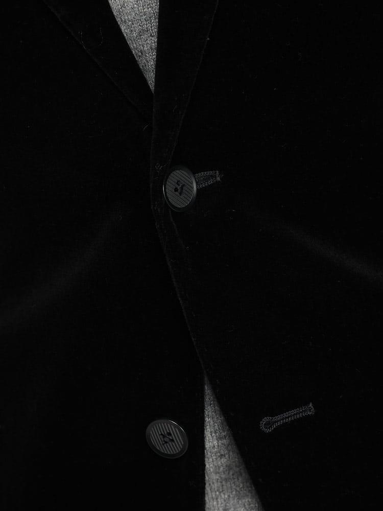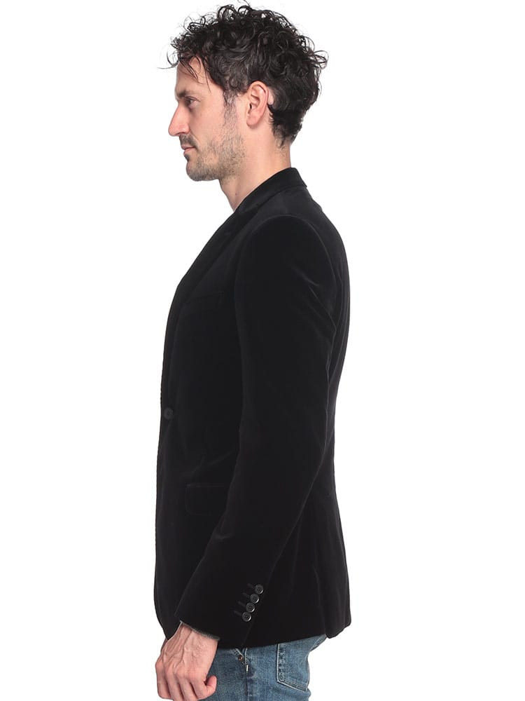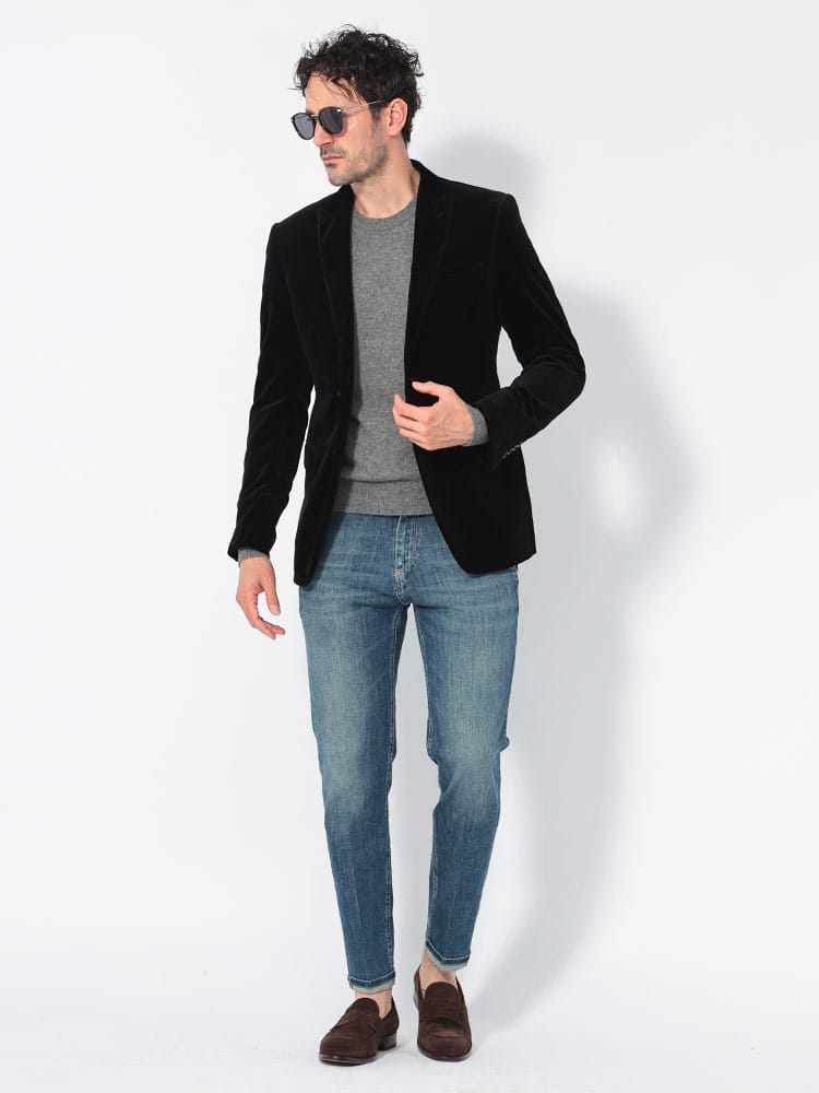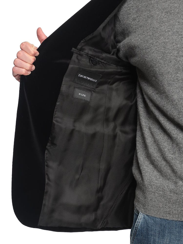 エンポリオアルマーニのジャケットは、上質なコットンベルベット素材が特徴。スリムフィットなシルエットで、洗練された大人の男性を演出します。シングル2ボタンのシンプルなデザインながら、ピークドラペルがアクセントとなり、スタイリッシュな印象。