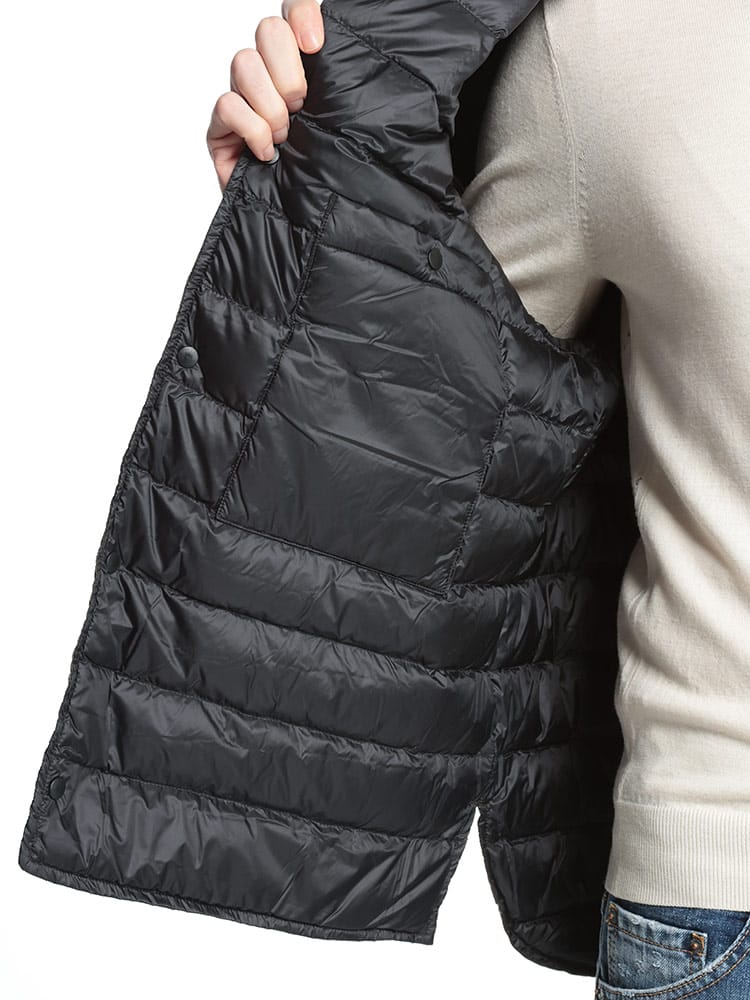 クラシックで洗練されたデザインの Ando ダウン ジャケットは、ワードローブに欠かせないアイテムです。リバーシブルなので、気分やスタイルに合わせてお使いいただけます。上質で軽量でありながら非常に保温性の高い天然フランス産ダウンを使用しているため、ミッドシーズンに最適なダウンジャケットですが、真冬にはお気に入りのコートの下に着るインナーとしても最適です。