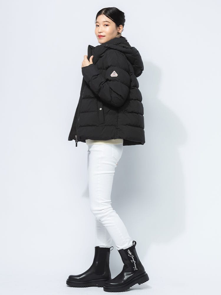 素材 :[表地]ポリエステル95% ポリウレタン5% [コーティング]PUコーティング [裏地]ポリエステル100% [中綿]ダウン90% フェザー10%