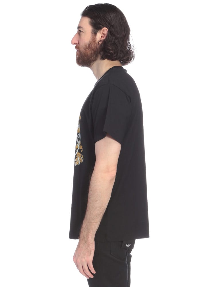 ブランドを象徴するレターVエンブレムロゴが印象的なクルーネック半袖Tシャツです。柔らかなコットン素材を使用し、快適な着心地を実現。シンプルなデザインながらも、ヴェルサーチェらしい洗練された雰囲気を醸し出します。カジュアルなスタイルから少しドレスアップしたスタイルまで、幅広いコーディネートに合わせやすいアイテムです。